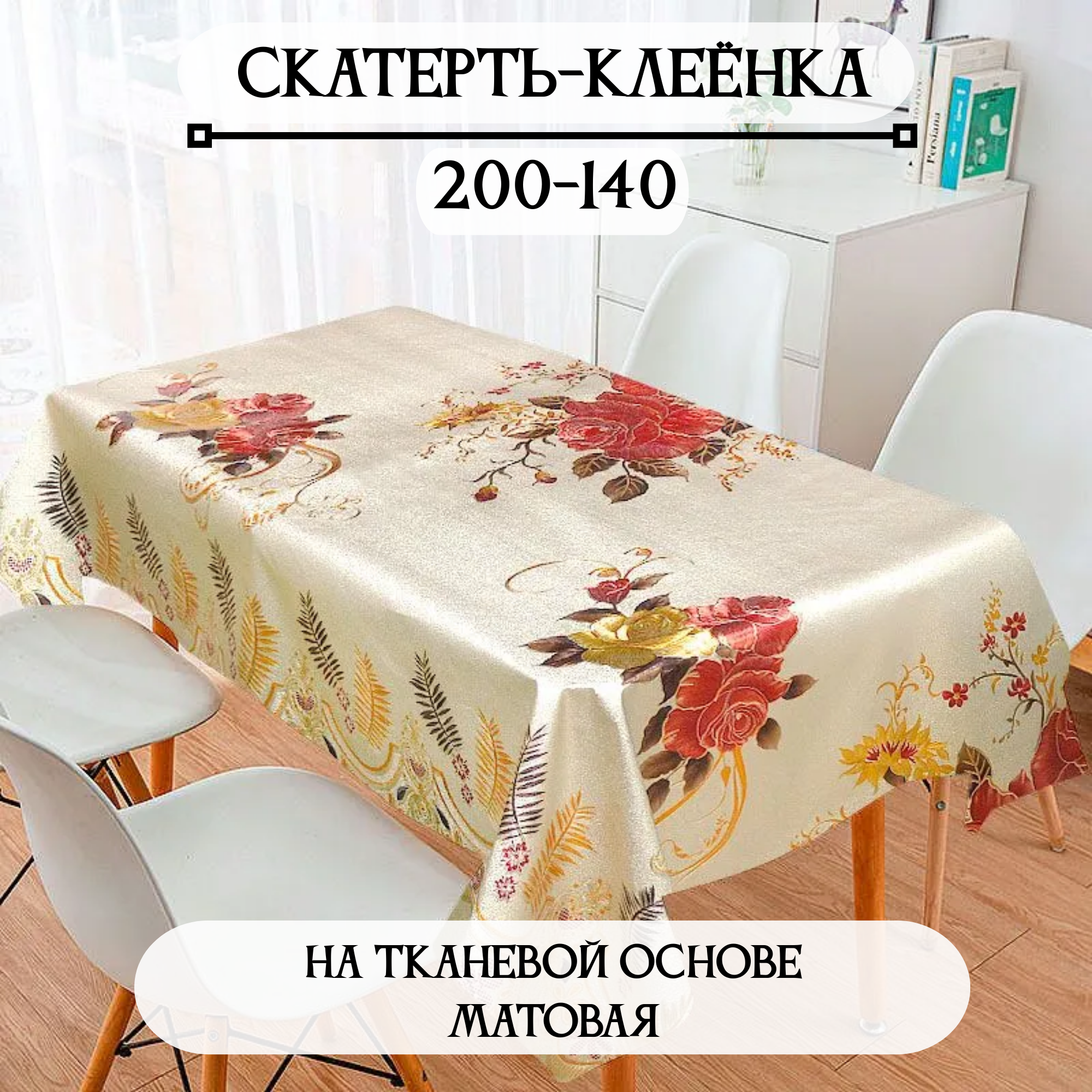 Скатерть-Клеенка на стол ПВХ, на тканевой основе 200x140 см Розы