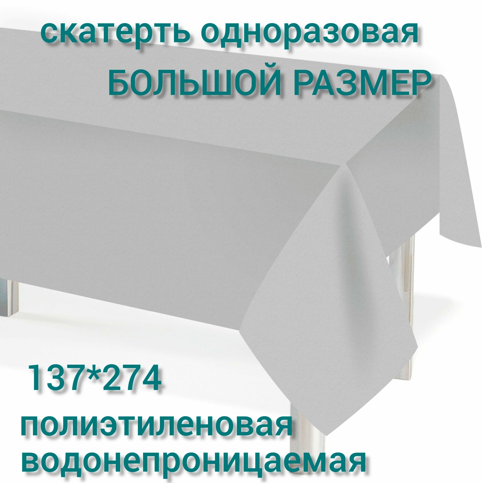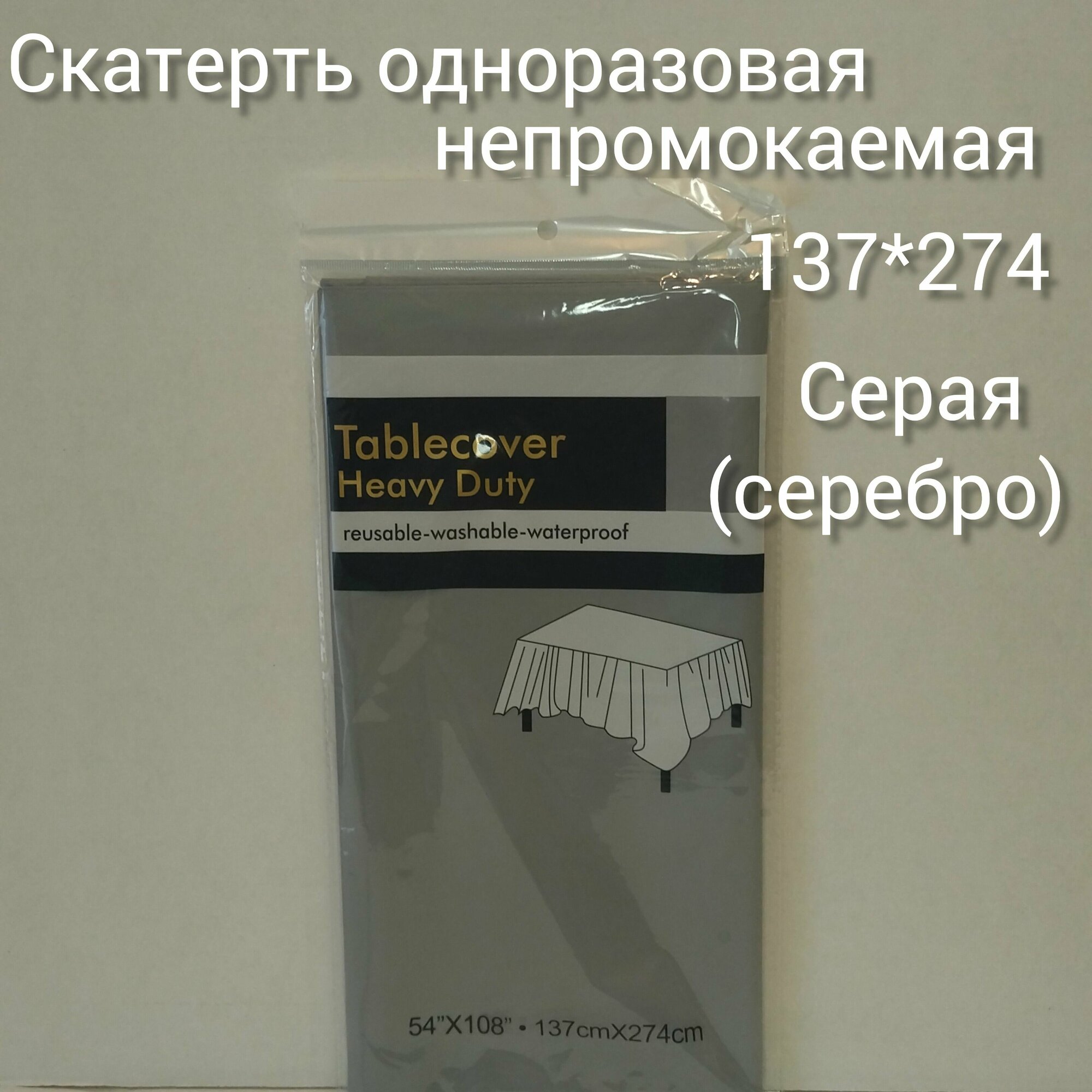 Скатерть одноразовая, Мастхэв, Серебро, 137x274 см, 1 шт.