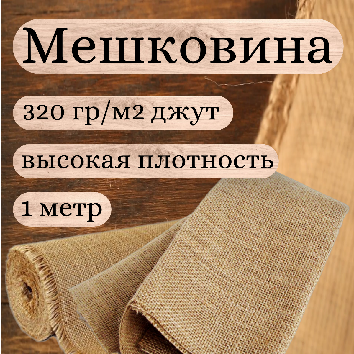 Мешковина джут 320 гр., 1 метр, ширина 110 см. (число нитей 46/54) Ткань для подарков, декора, упаковки.