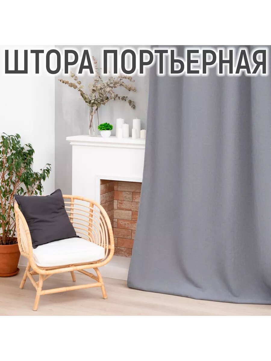 Штора портьерная Этель «Структурная», цвет серый, на шторной ленте, 250х265 см, 100% п/э