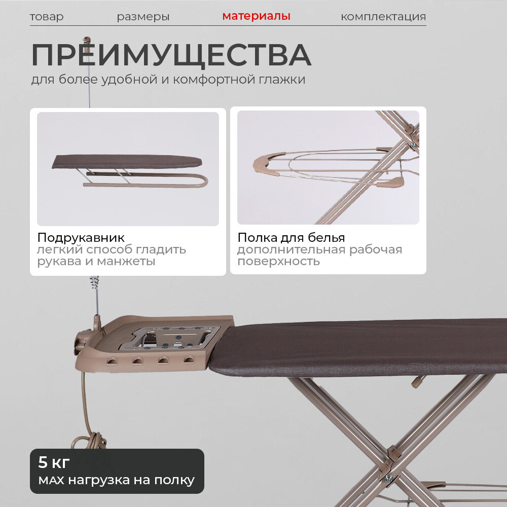 Гладильная доска Nika с полкой и подрукавником для глажки белья интересное: