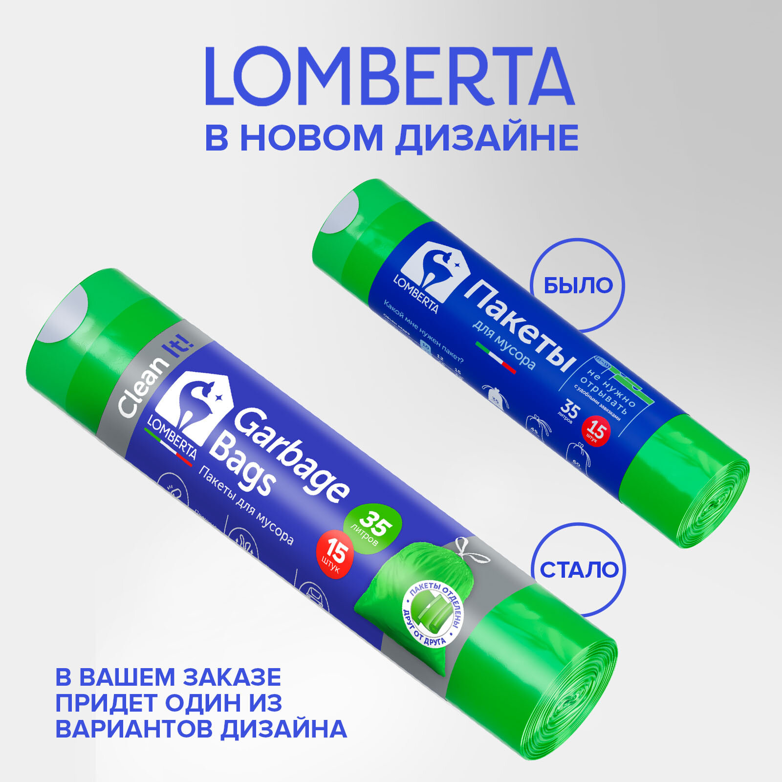 Пакеты для мусора Lomberta Overlap, 35л x 15шт