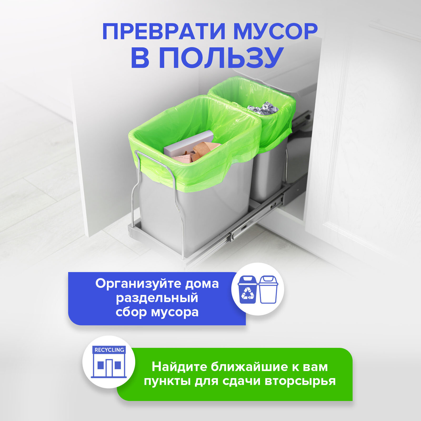 Мешки для мусора Белый Енот S032nn 60 л (20 шт.)