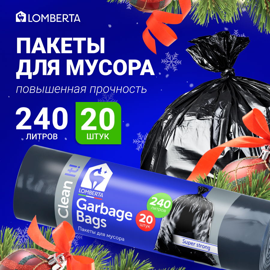 Мешки для мусора Lomberta, плотные в рулоне, для строительного мусора, 240 л, 20 шт.