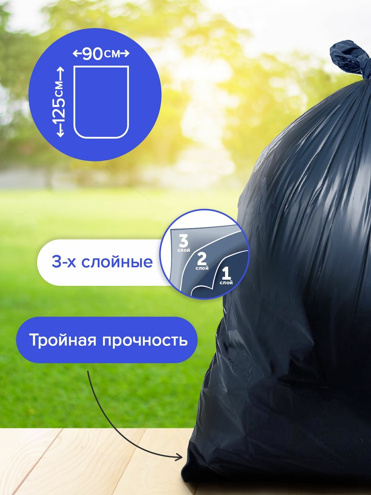 Пакеты для мусора LOMBERTA Трехслойные, без затяжки, 5 шт, 240 л