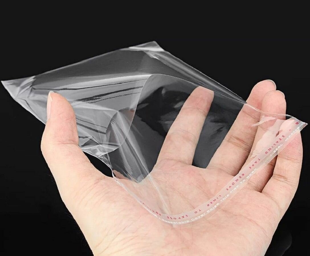 Упаковочные бопп пакеты с клеевым клапаном, 10*14 см,100 шт.