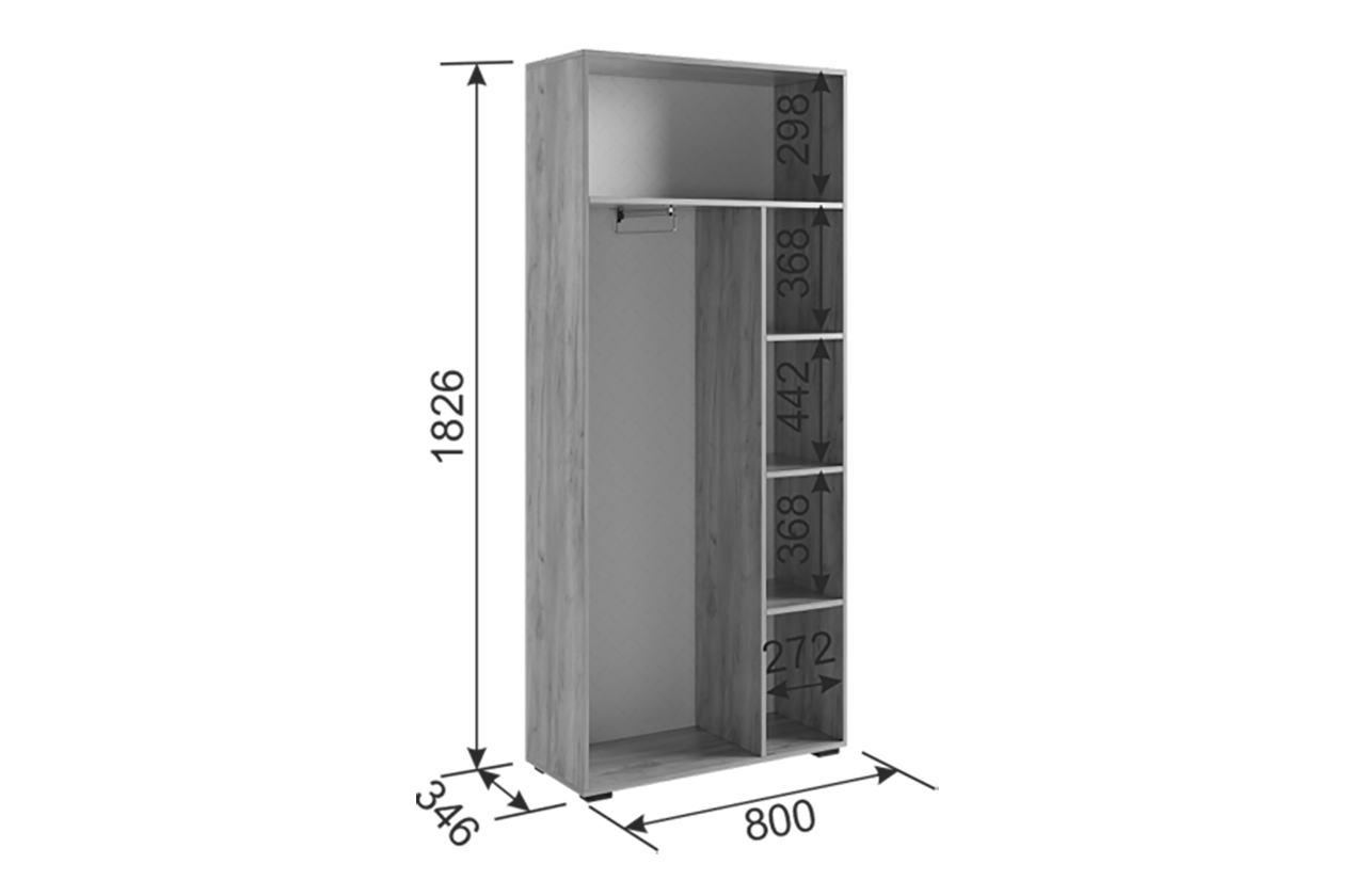 | Состав комплекта | шкаф двухдверный со штангой; вешалка с зеркалом и тумбой. |