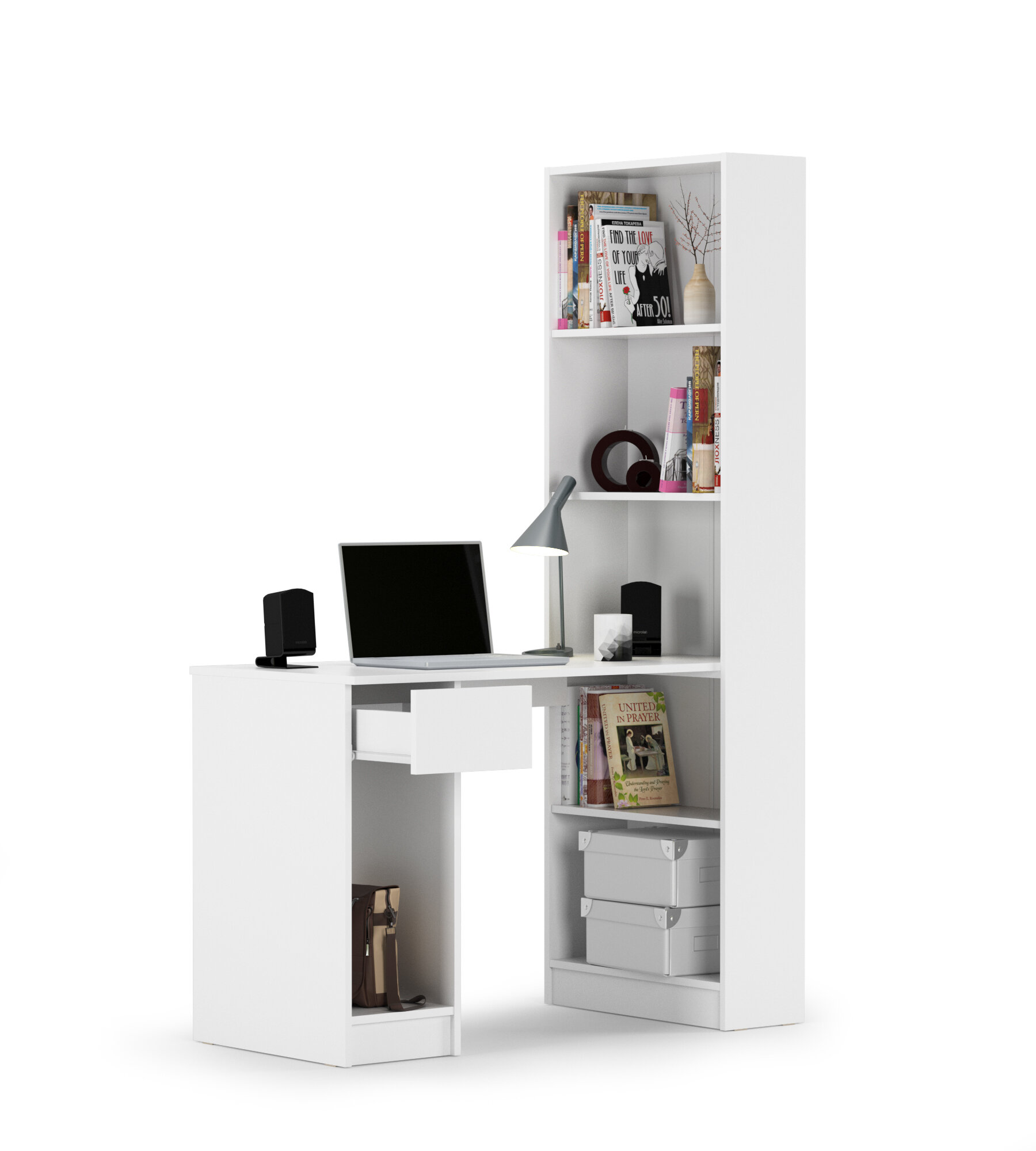 Купить Стол письменный со стеллажом Mobi Лайт 10.01, ЛДСП, цвет белый