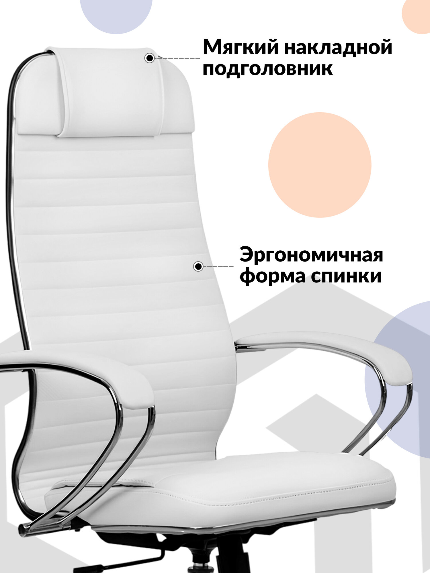 СохранитьКресло компьютерное Метта 6-2 на колесиках, с подлокотниками, высокой спинкой, подголовником, экокожа, белое / Стул ортопедический, 120 кг интересное: