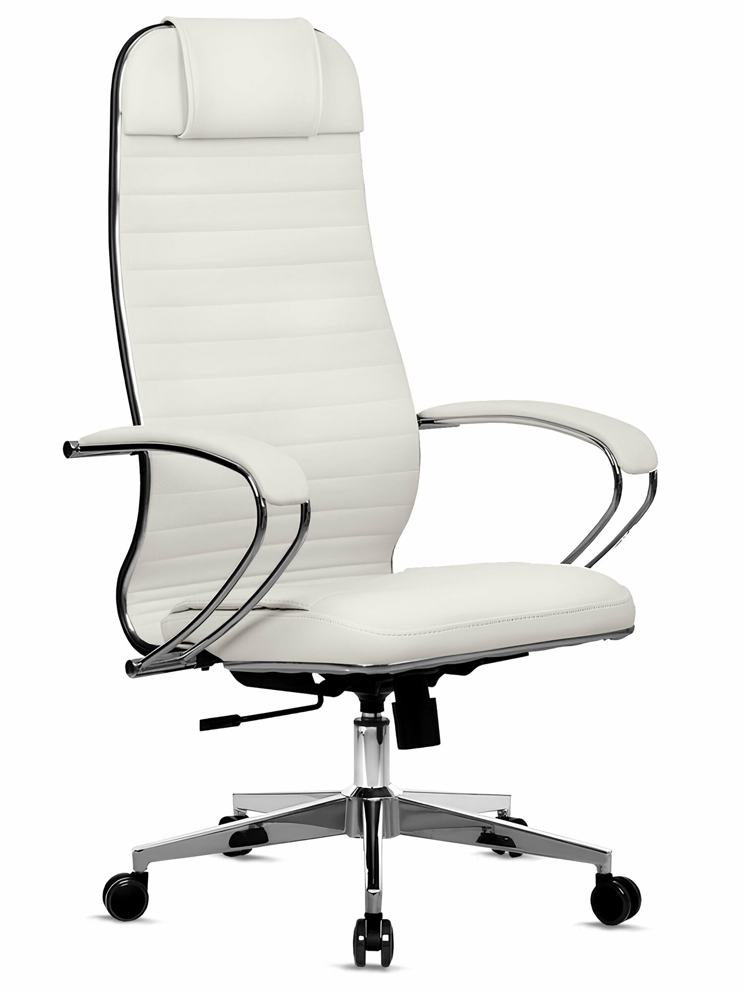 Кресло METTA компьютерное белое, экокожа, крестовина металл - Кресло руководителя, с подголовником