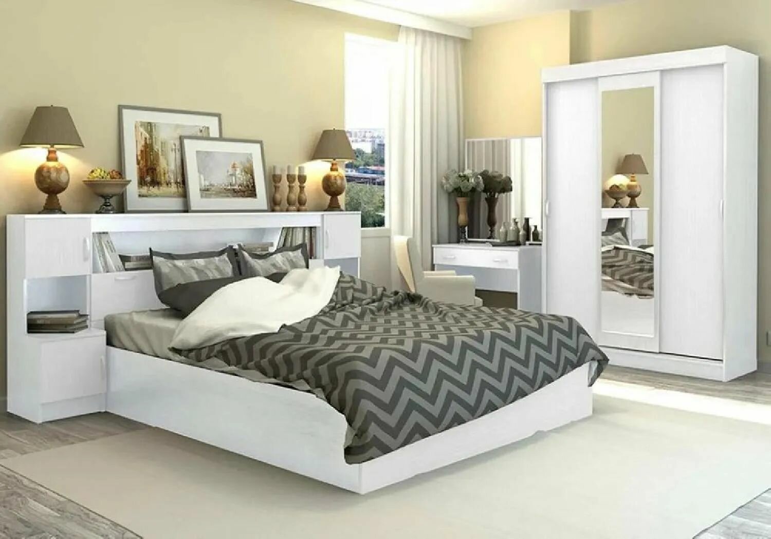 Кровать двуспальная с надстройкой Нонтон Бася 160*200 см, белый