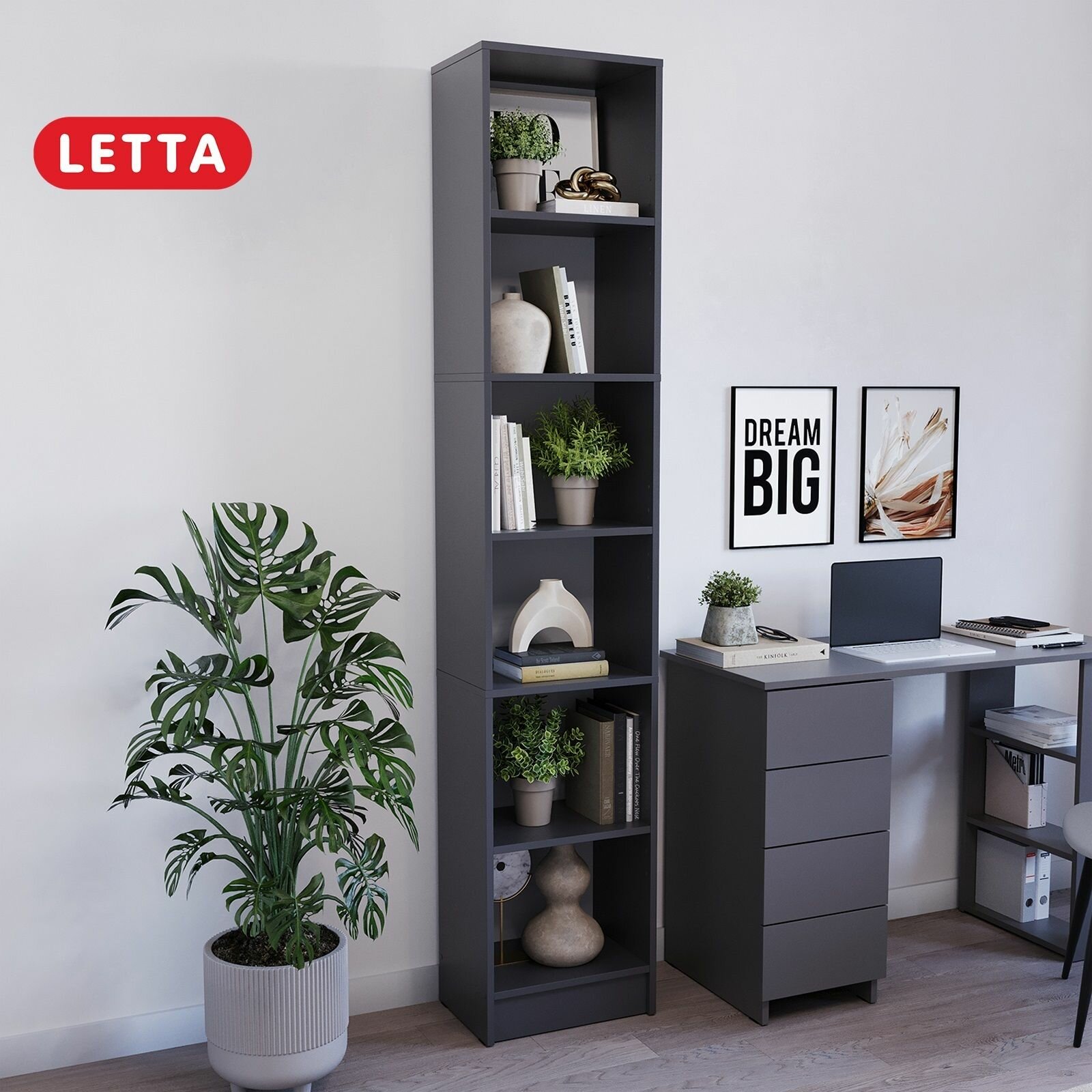 Стеллаж Hardy узкий графит 202*40*28 интересное: