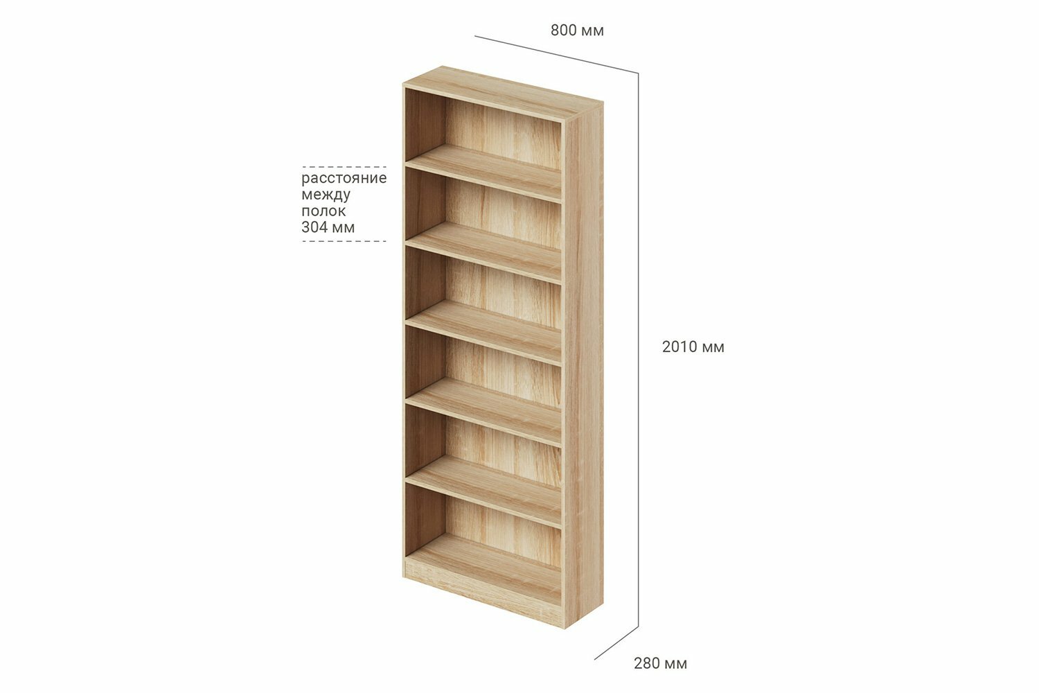 Стеллаж деревянный напольный, книжный стеллаж лофт, для книг, для цветов Daily 80 800х280х2010 Ясень Анкор светлый