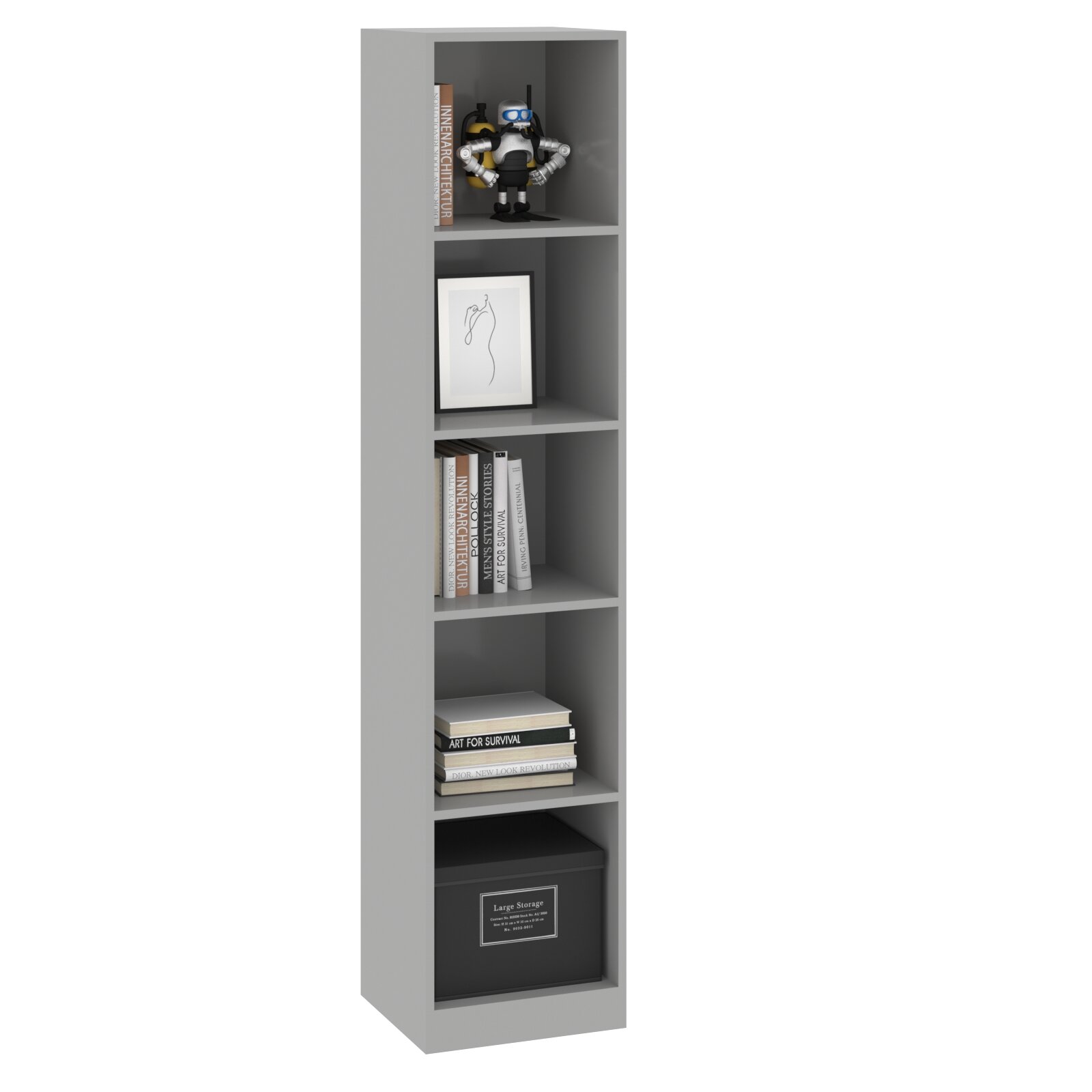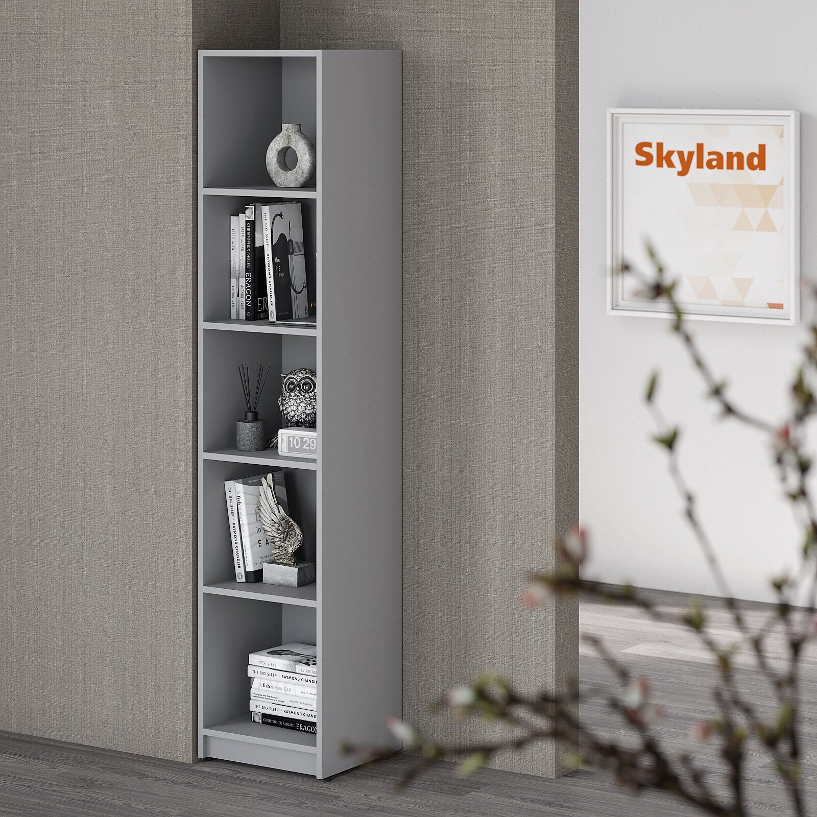 Стеллаж для книг узкий SKYLAND SIMPLE SR-5U, серый, 38х35х181 см