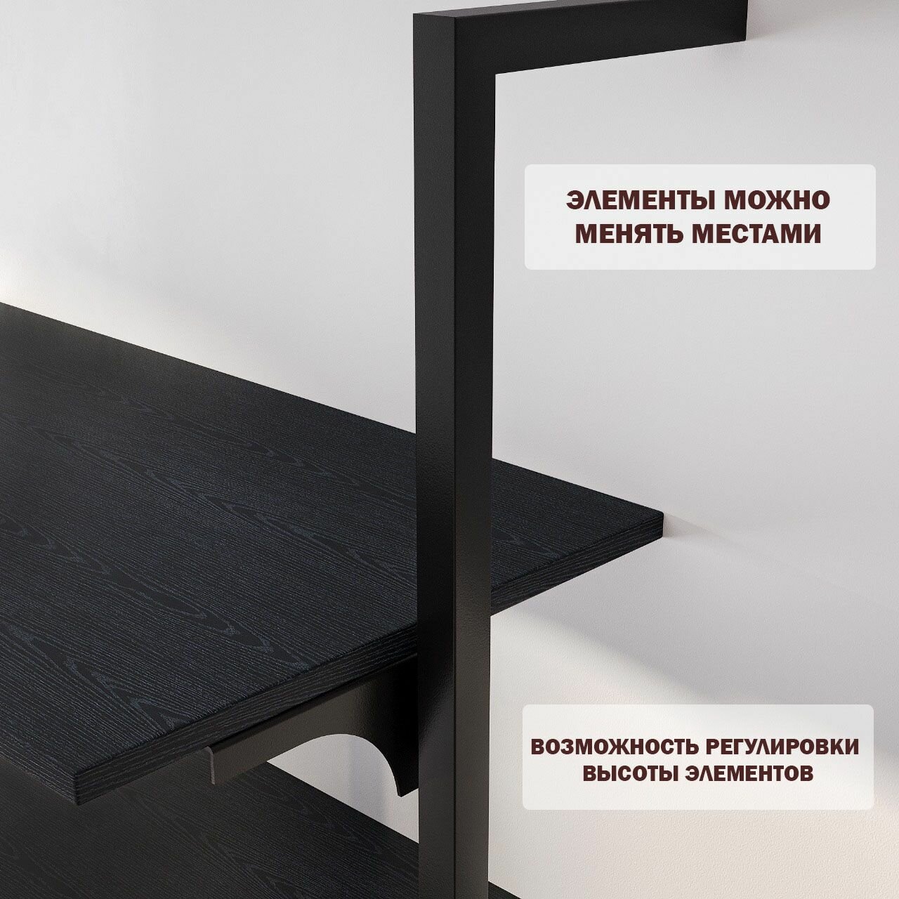 Полка для Стеллажа Лофт GARDENA (68х39х1,6см) Черный Оникс