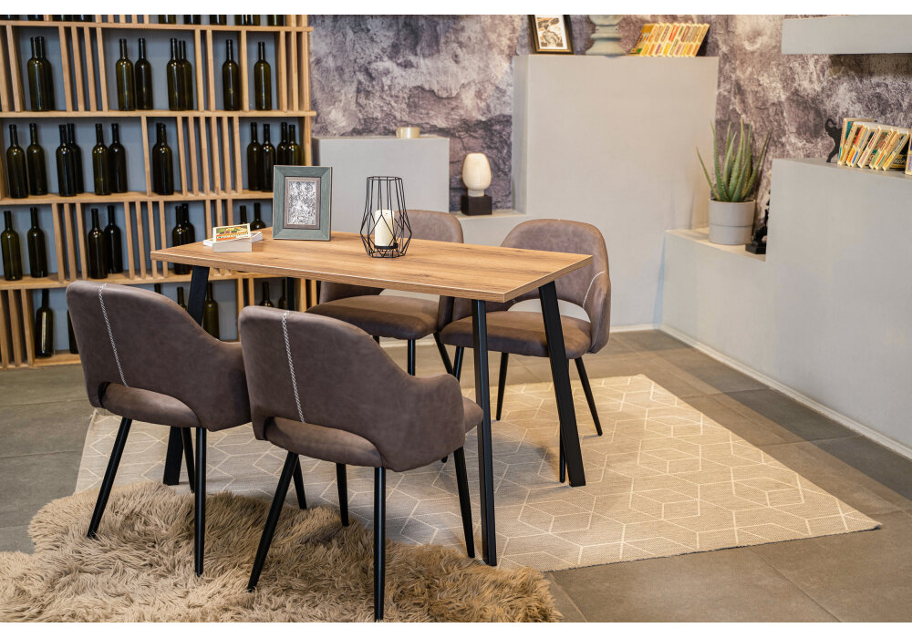 Стол обеденный Woodville Тринити Лофт 140 25 мм дуб делано темный / матовый черный