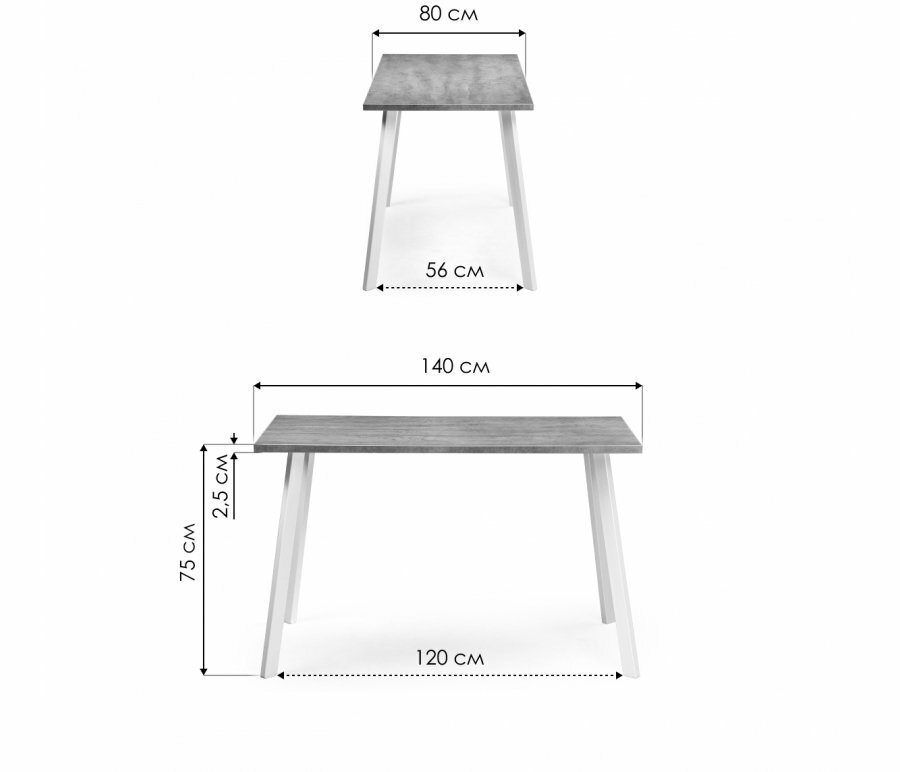 Стол Лайфмебель Алеста Лофт 120 25 мм бетон / белый матовый