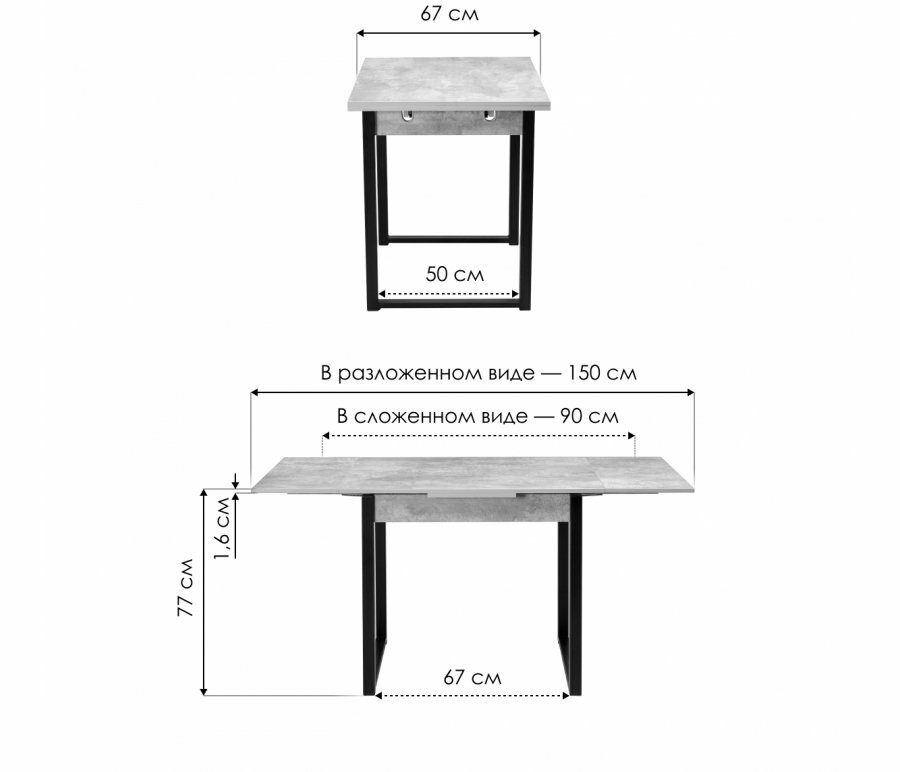 Стол Форли 90(150)х67 файерстоун / черный матовый 550564