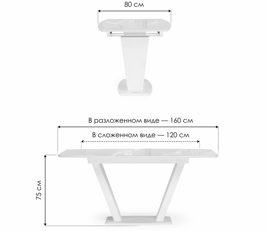 Стеклянный стол Лайфмебель Rock 100х75 белый/ черный 100 х 100 x 75