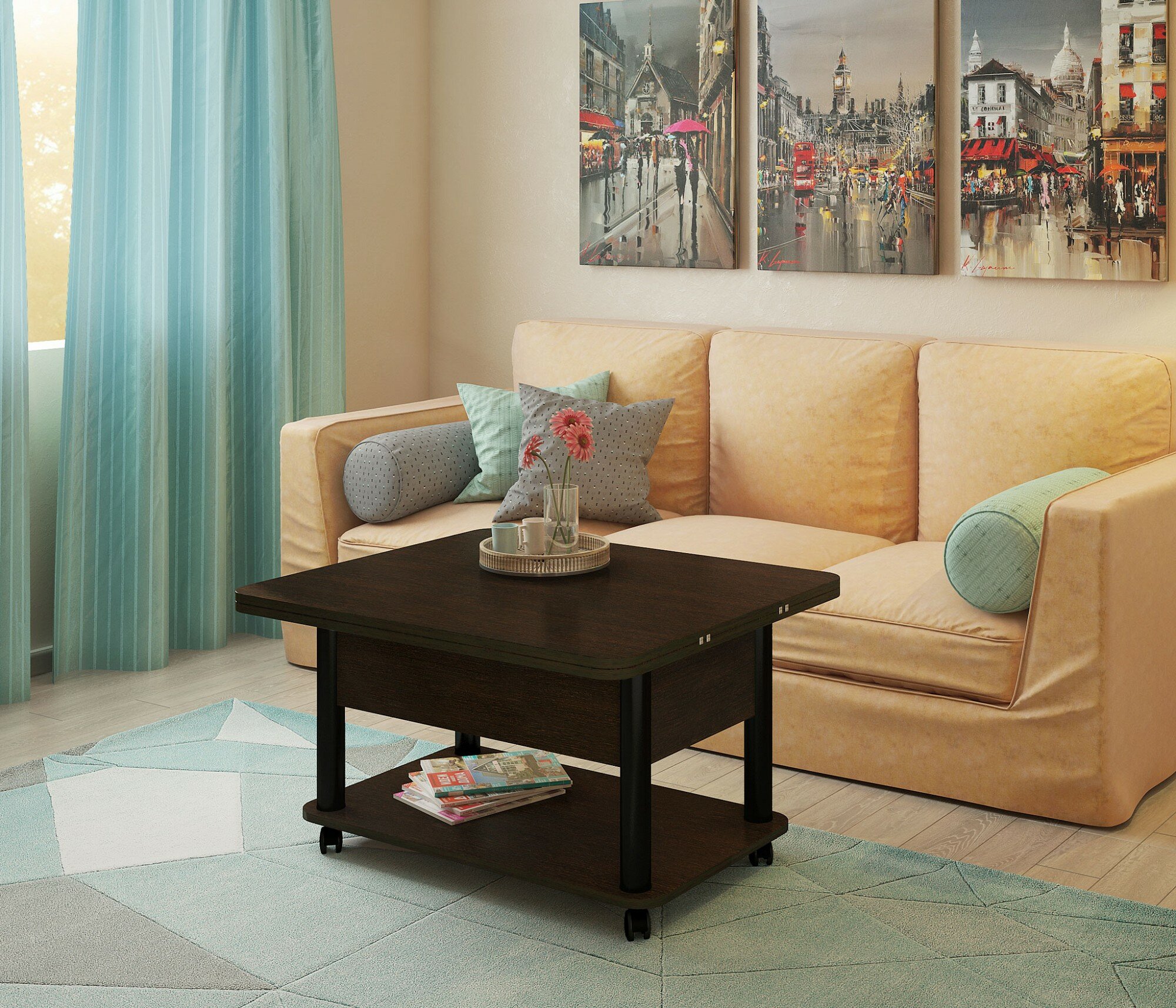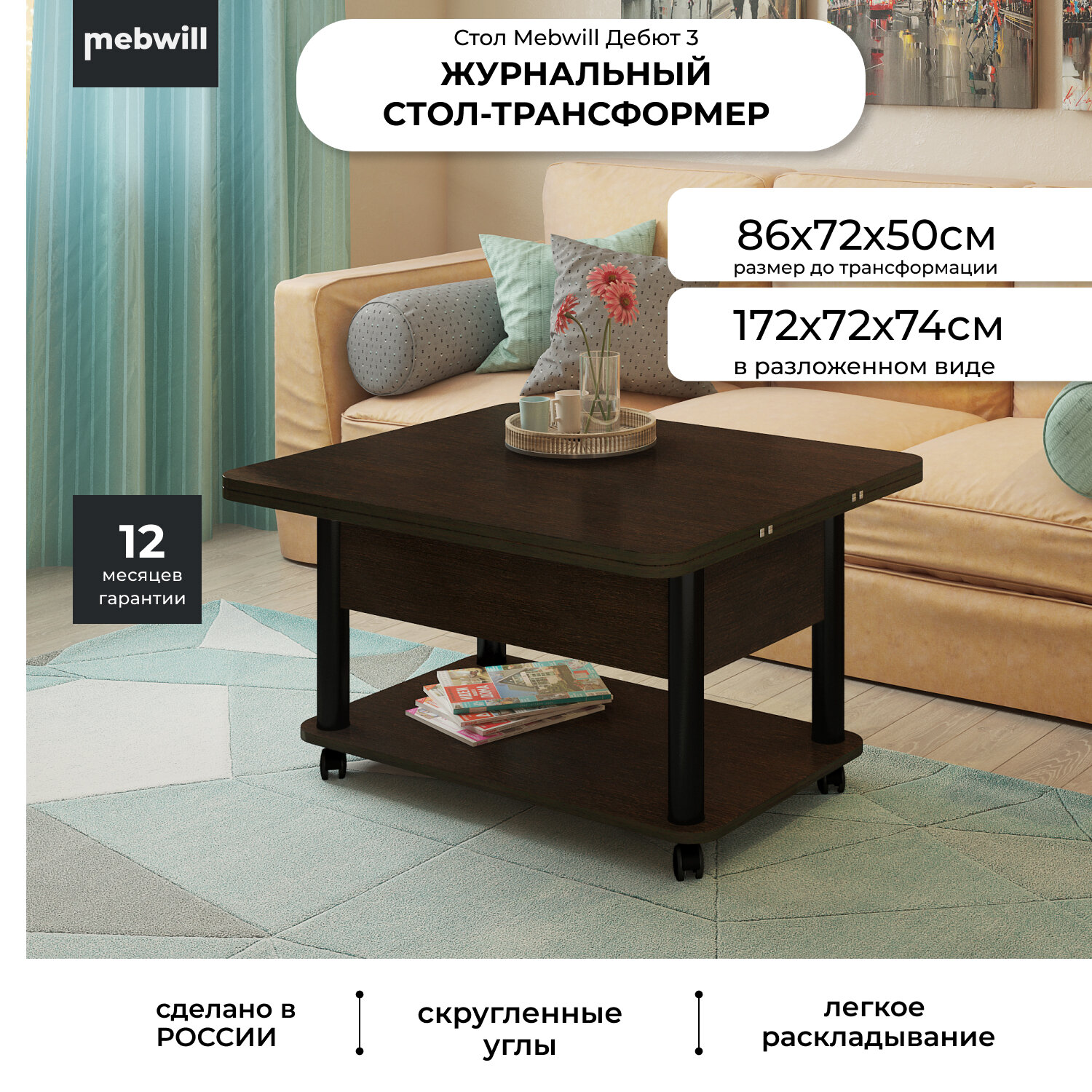 Журнальный стол-трансформер Дебют-3 (венге светлый, ножки белые)
