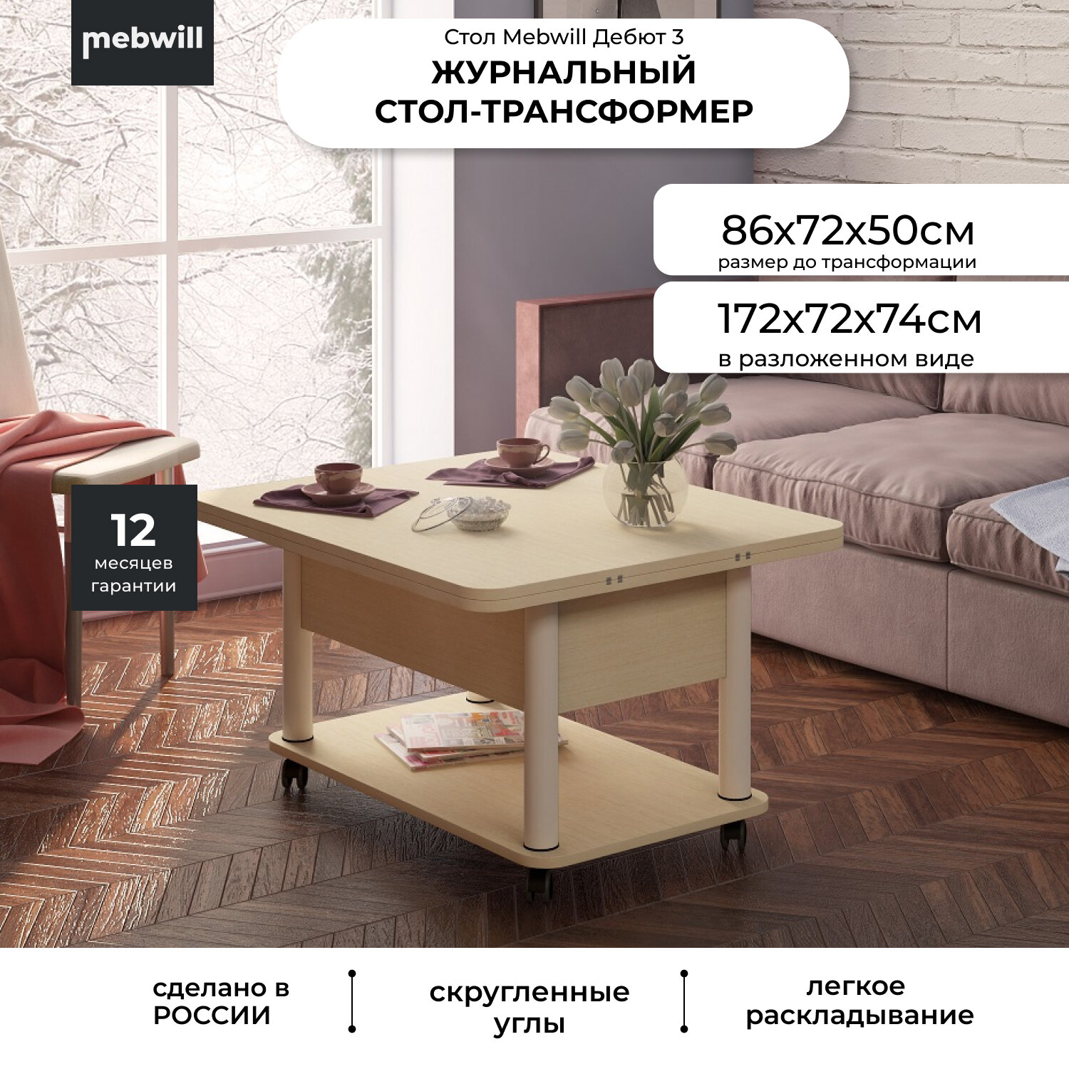 СохранитьСтол-трансформер MEBWILL Дебют 3 Венге Светлый/Белый интересное: