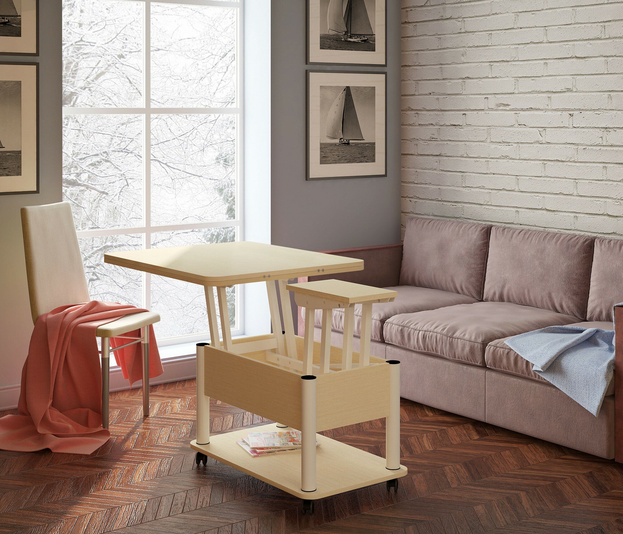 Стол-трансформер Дебют 3, 86х72х50 см светлый венге/ножки хром