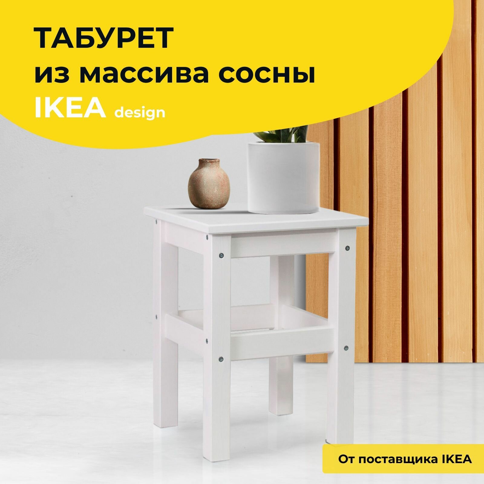 Табурет деревянный Одвар белый для кухни из массива сосны, 33х33 см