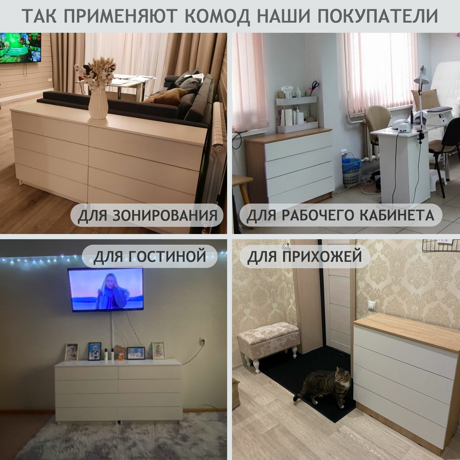 Комод LETTA "Ультра Крафт", белый, деревянный, 4 ящика, ЛДСП, 75х33х72.9 см