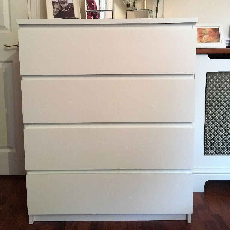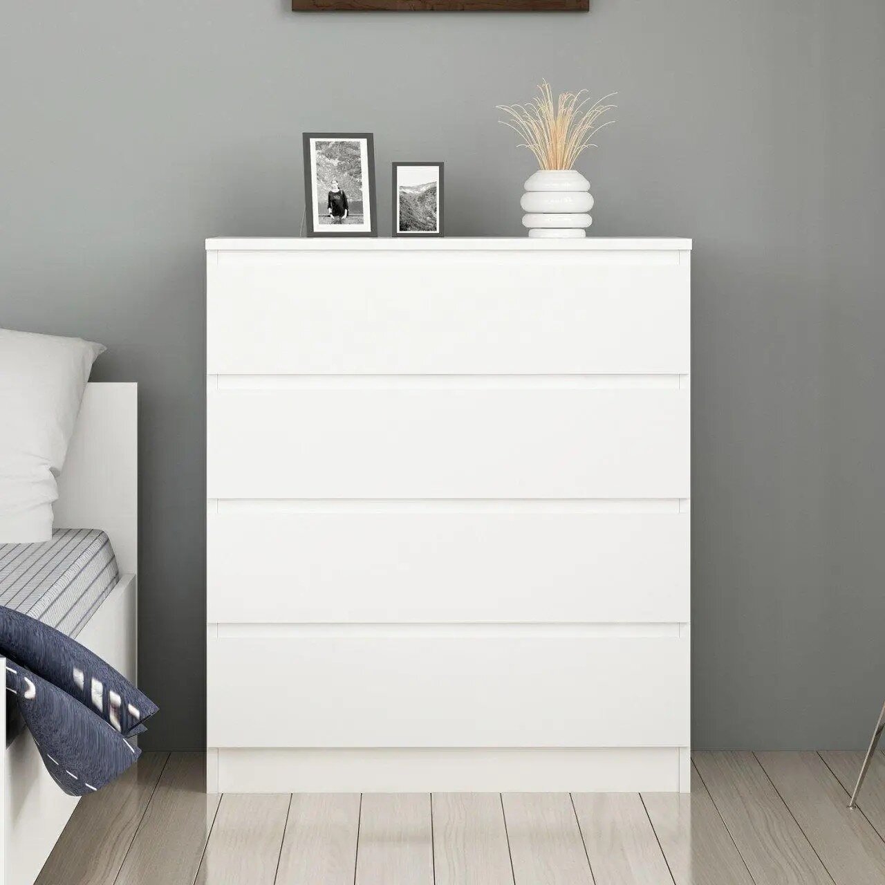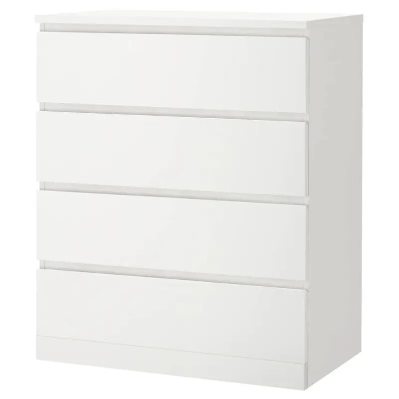 Комод для одежды с 4 ящиками, с ручками, большой Мальта Plus Белый деревянный