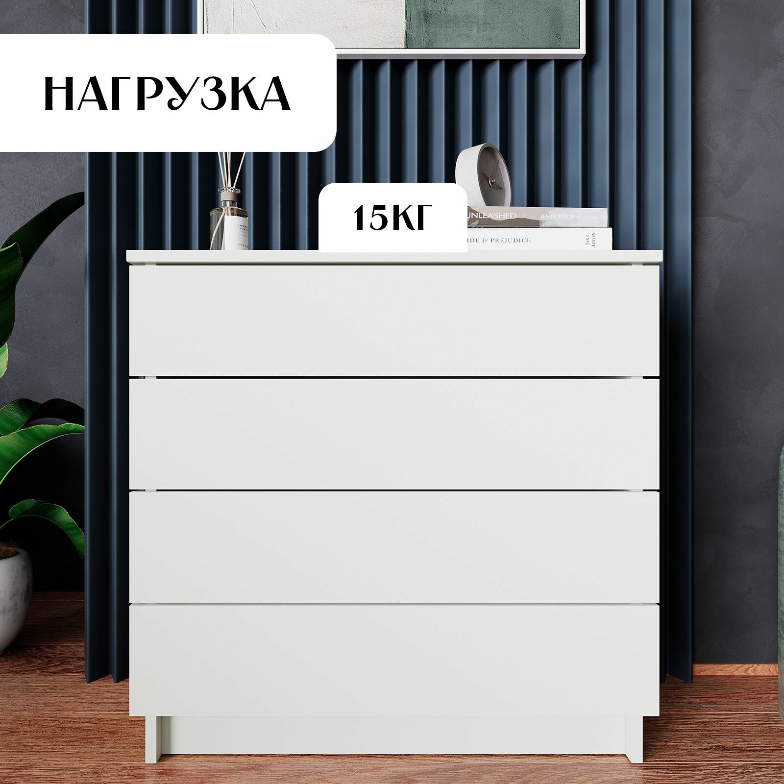 Комод LETTA "Ультра", 4 ящика, белый, ламинированный, ЛДСП, 77,8x32,5x79,4 см