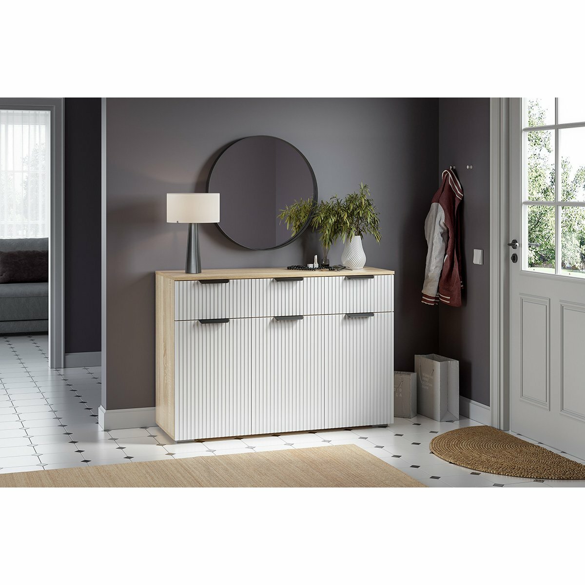 Купить Комод Нонтон Норд Line КМ03-1200 дуб сонома / софт пломбир 120x45.4x83.8 см