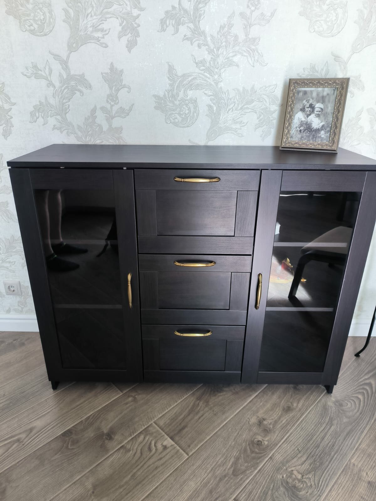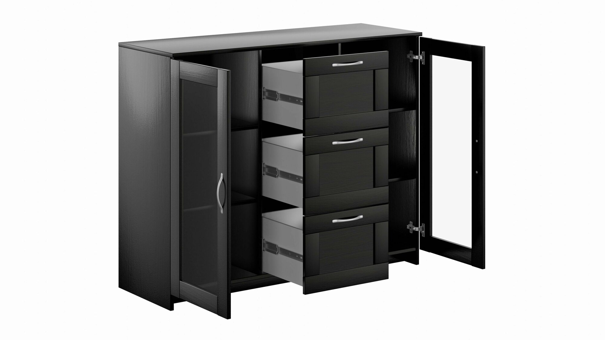 Бримнэс / сириус тумба шведский стандарт 2 двери со стеклом и 3 ящика 117х95 Дуб Венге