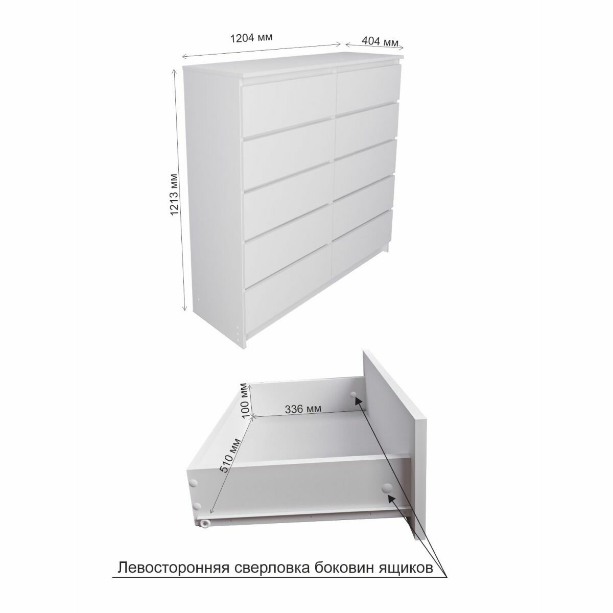 Купить Комод мори 1200.10 Белый, 10 ящиков