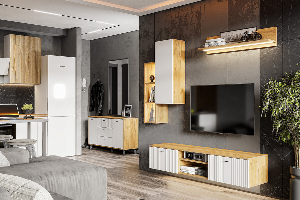 Модульная Система "милан" Тумба телевидеоаппаратура со створками Дуб Золотой/Белый матовый