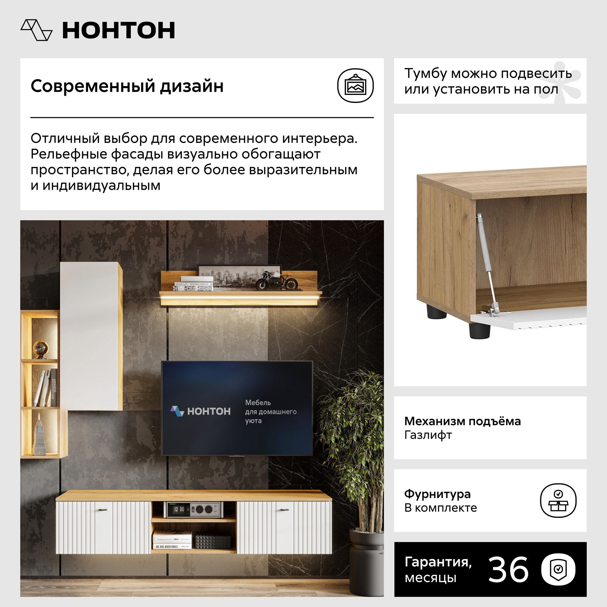 Купить PM.RU Тумба под телевизор напольная Ларенс ТВ с полками, с дверцами, закрытая, 160.1х41.8х36.8 см, Дуб золотой / Белый матовый