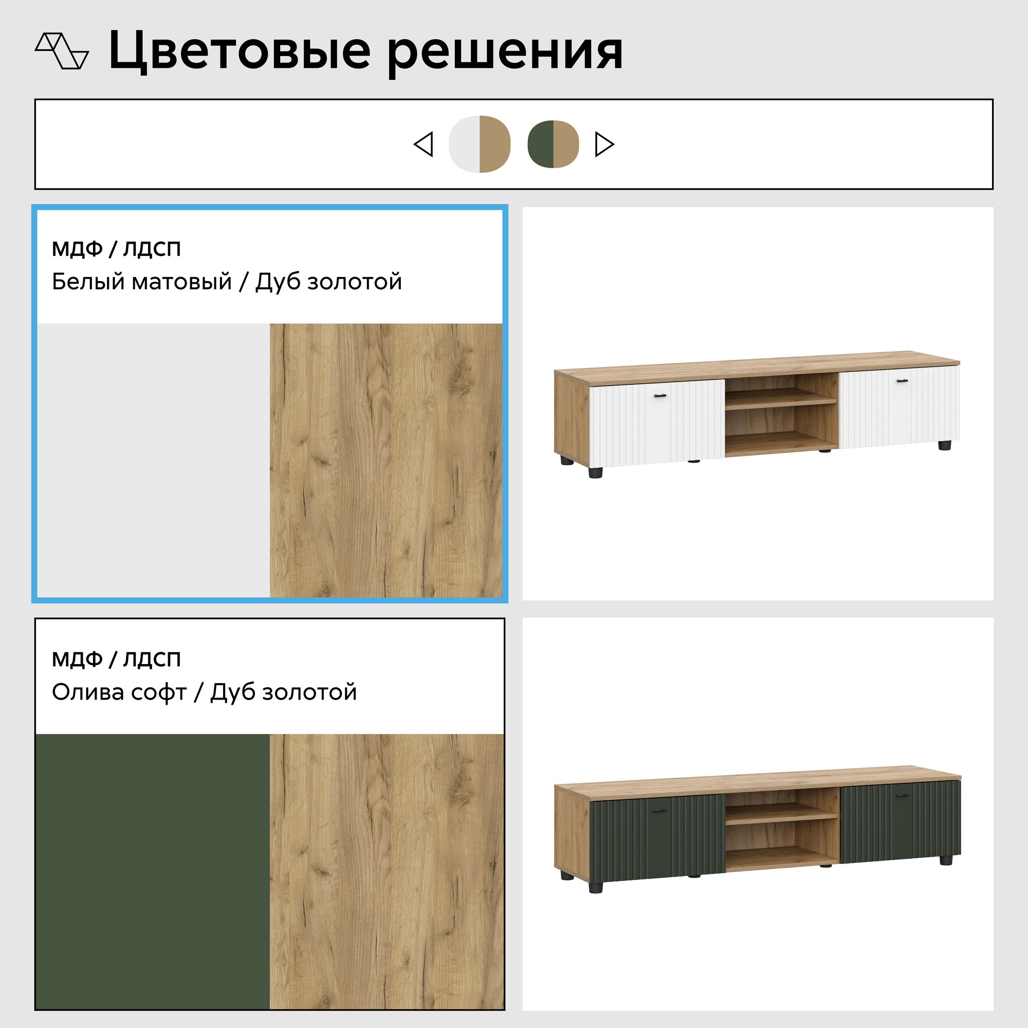 ТВ-тумба "Милан" со створками и нишей - Дуб Золотой/Белый матовый