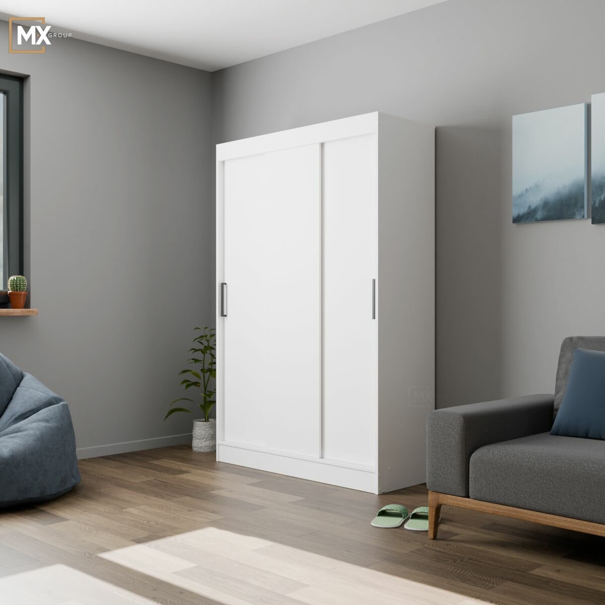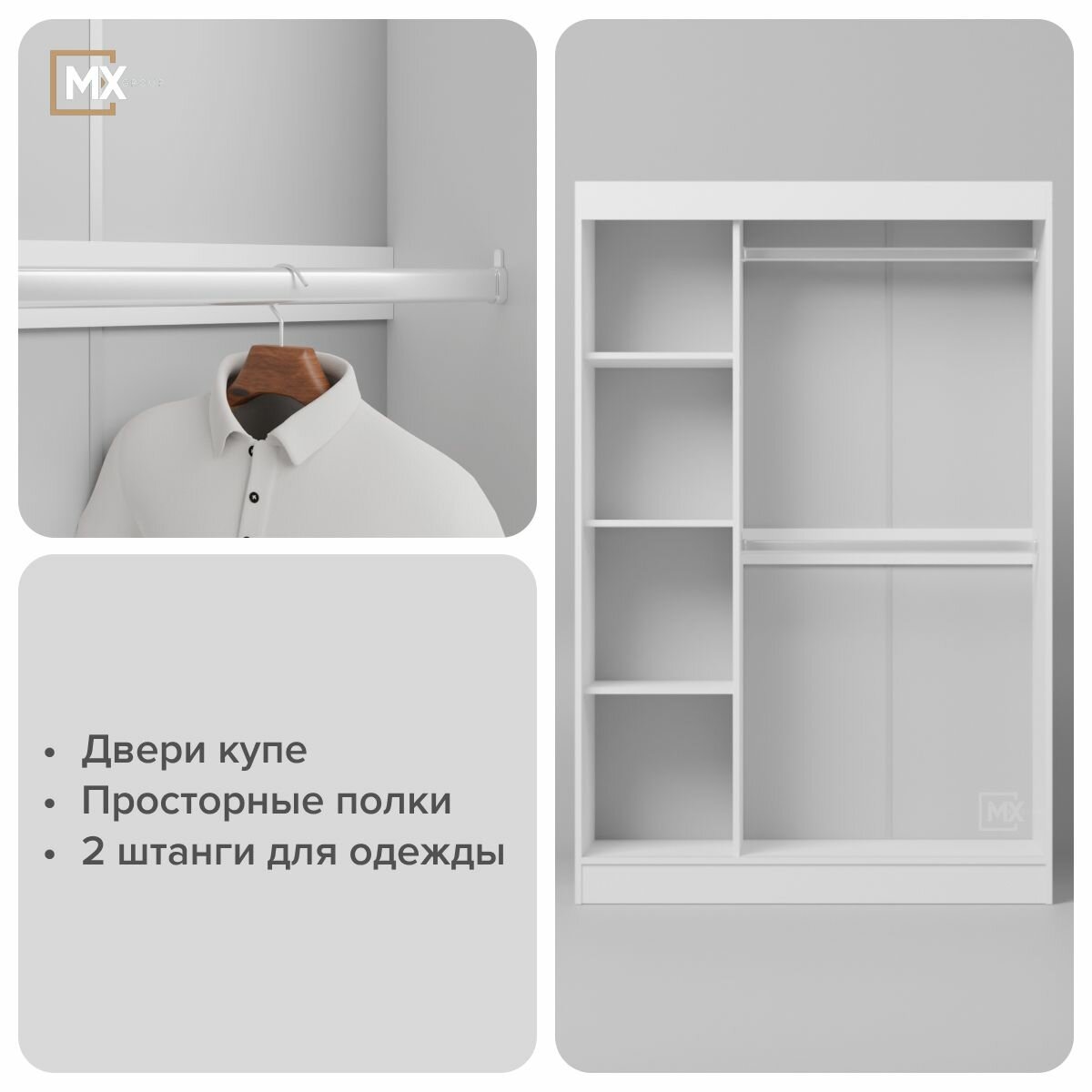 Шкаф для одежды распашной Нонтон Луас, 120 см, 7 полок и штанга, белый глянец