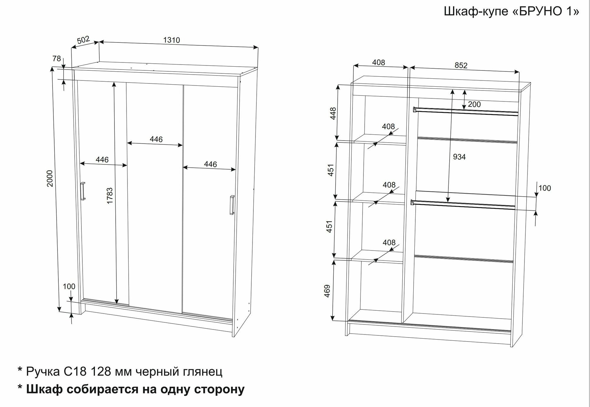 Шкаф-Купе Тайм-1/ Бассо/ Бруно Белый ЛДСП, с полками, штангами, для прихожей, спальни 1310х2000х500 мебельный РАЙ интересное: