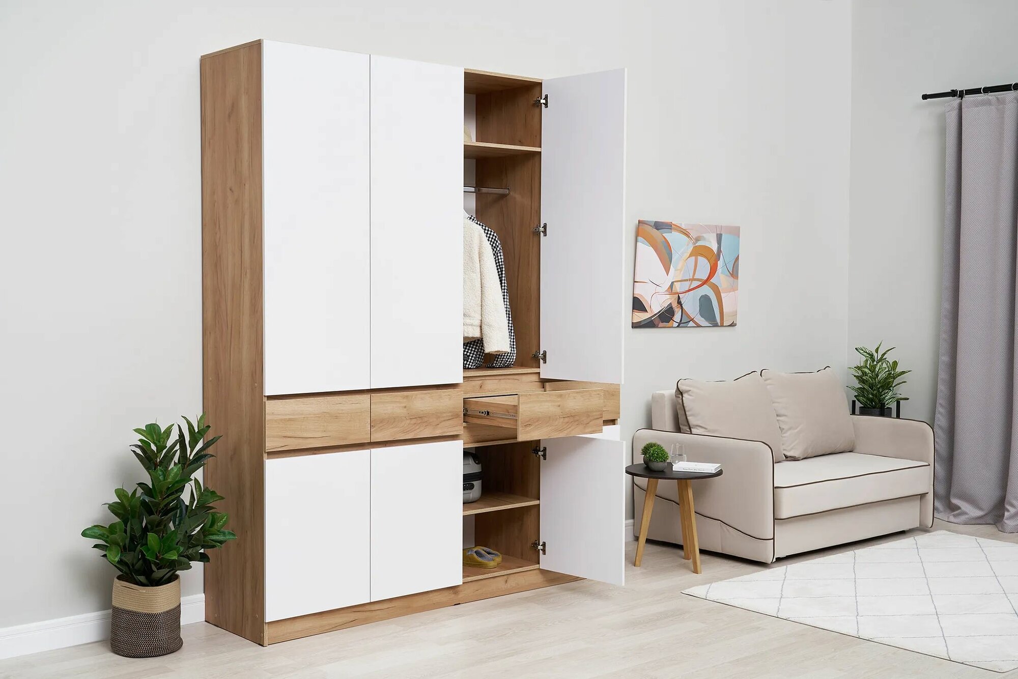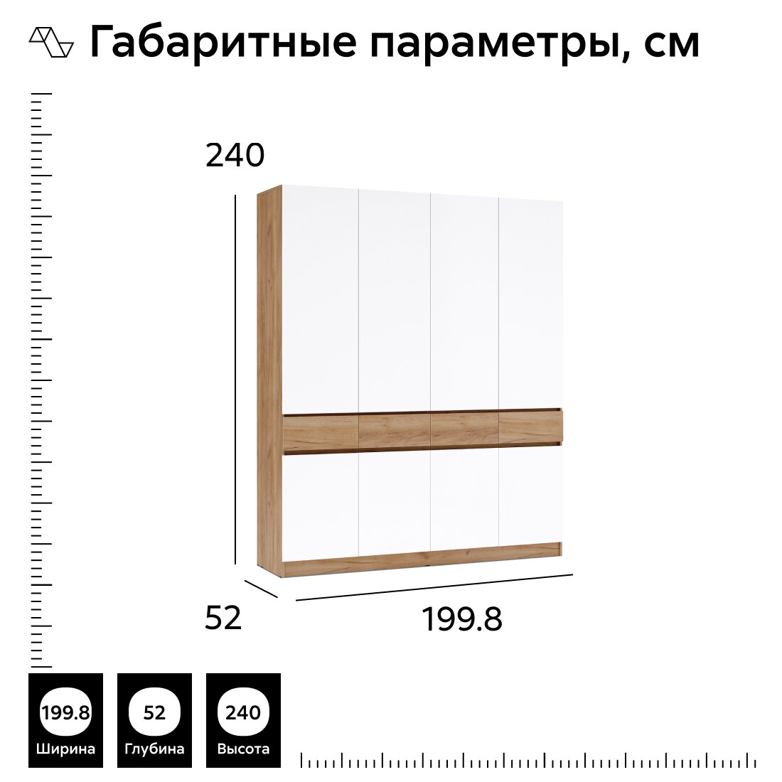 Шкаф МиФ Роджина 4-х створчатый дуб крафт / белый глянец 199.8x52x240 см