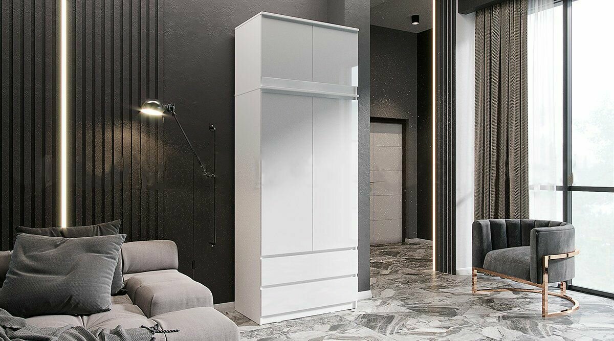 Шкаф 2-х створатый Челси комбинированный 90.2х51.4х179.6 Белый глянец холодный, белый интересное: