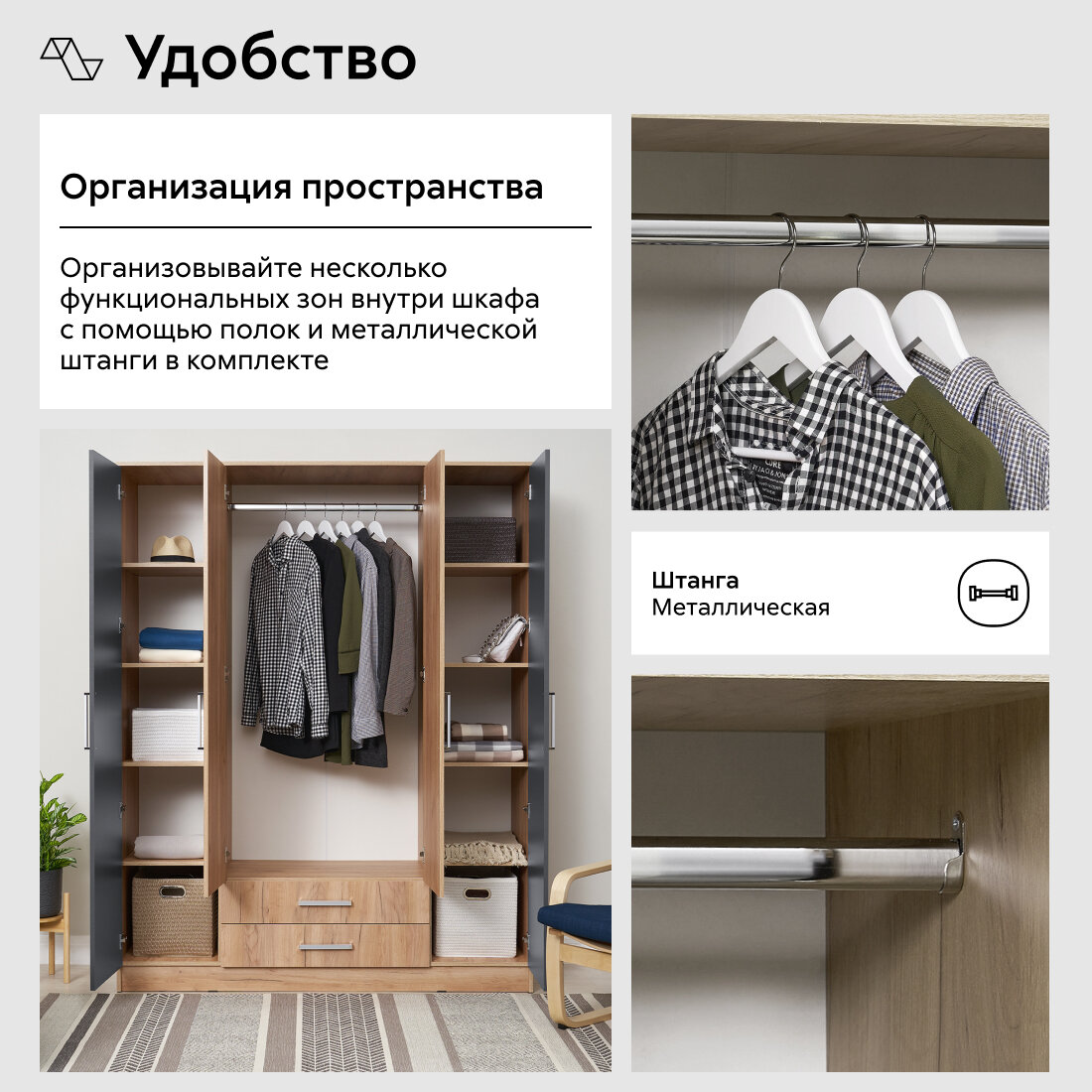 Шкаф Миф Мартина 4-дверный графит / дуб крафт 160х52х201.6 см