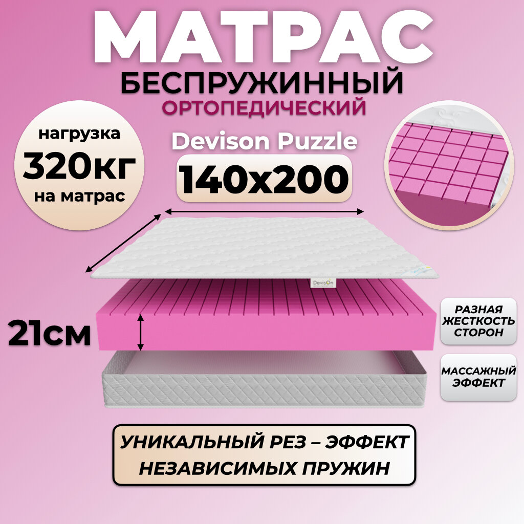 Матрас 140х200 беспружинный ортопедический Devison Puzzle