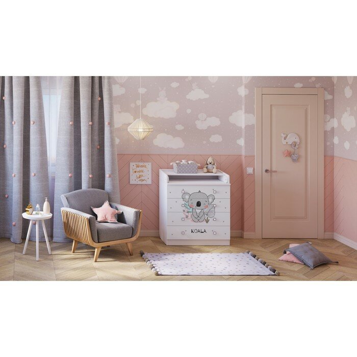 Комод пеленальный детский Фея 1580 "Коала", 80 х 47 х 92 см, 4 ящика, цвет белый