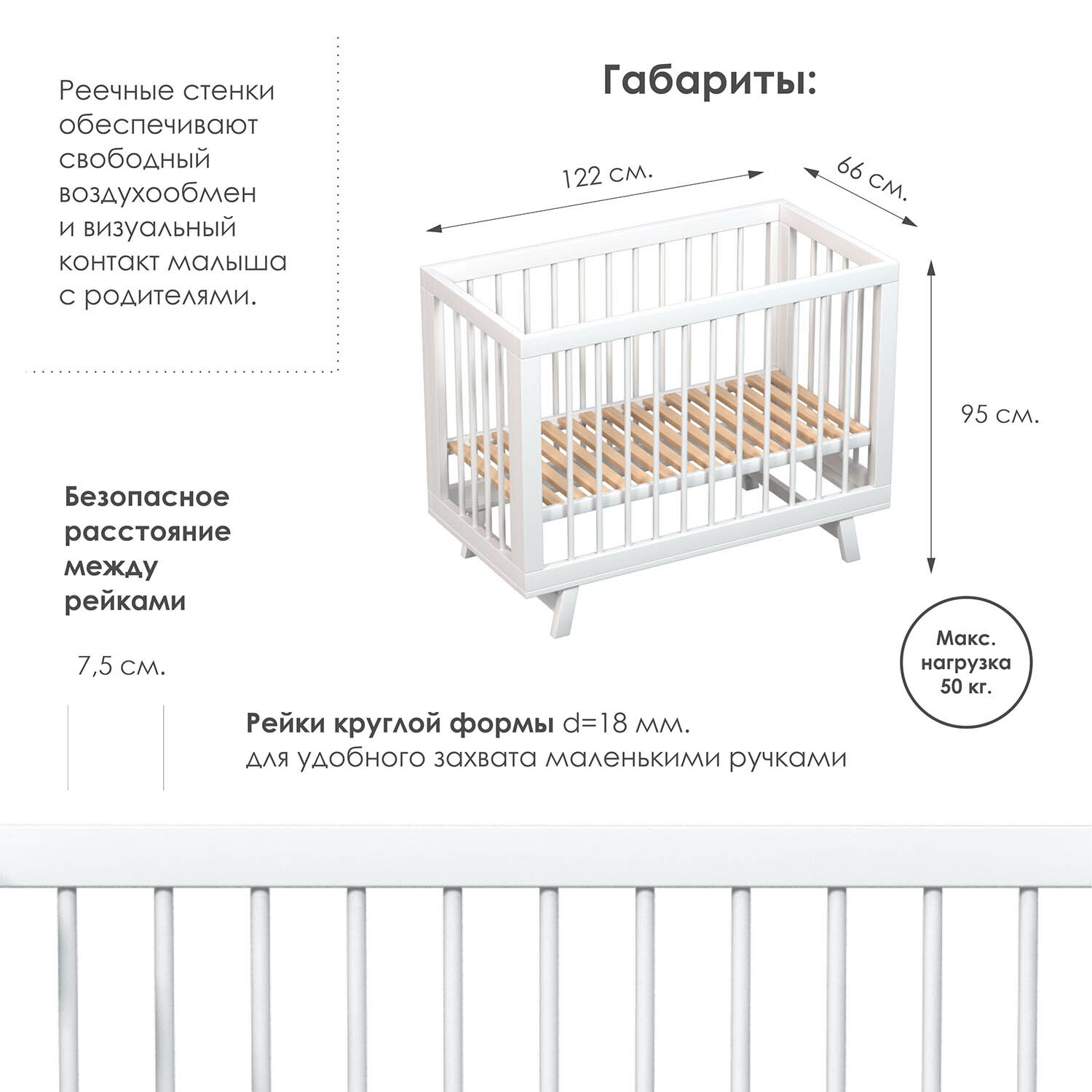 Кроватка детская Polini kids Porto 1300, белый-дуб каменный