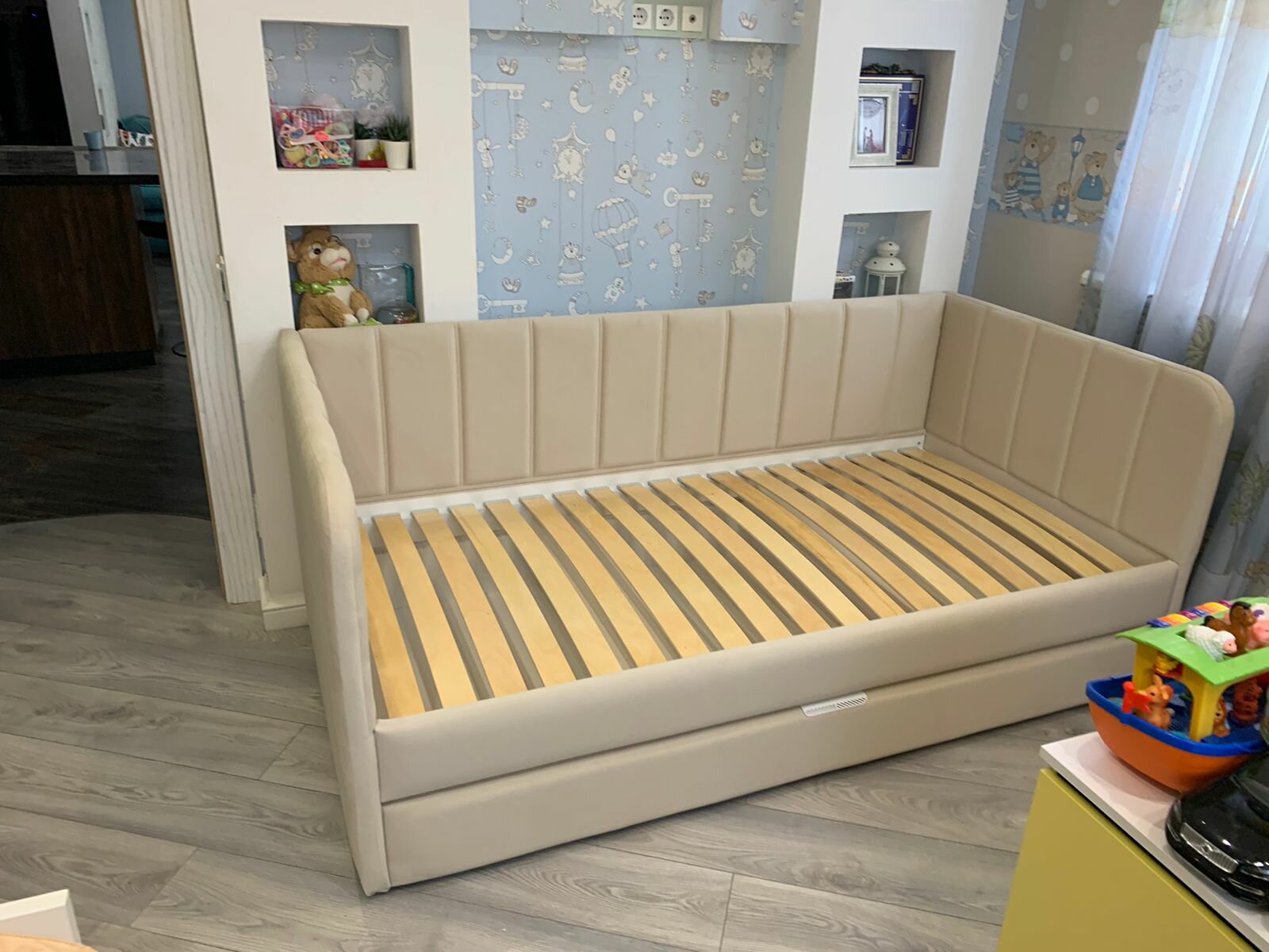 Futuka Kids Диван-кровать Crecker Newtone с ящиком для белья (дополнительным спальным местом) и бортиком-ограничителем, цвет бежевый, 180x90 см.