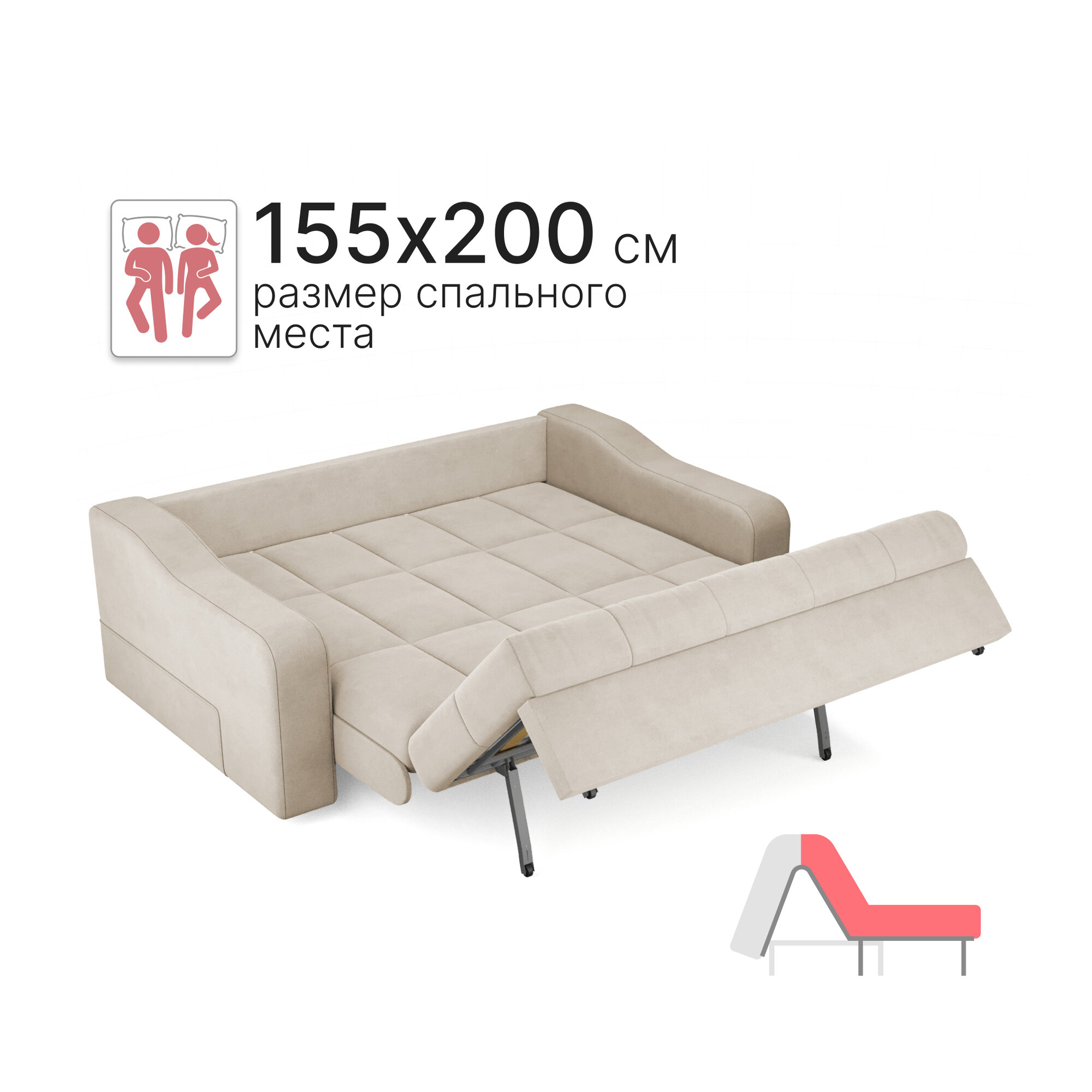 Диван-кровать раскладной Прямой, Аккордеон, ортопедический, 155х200 спальное место, Стелла, велюр бежевый