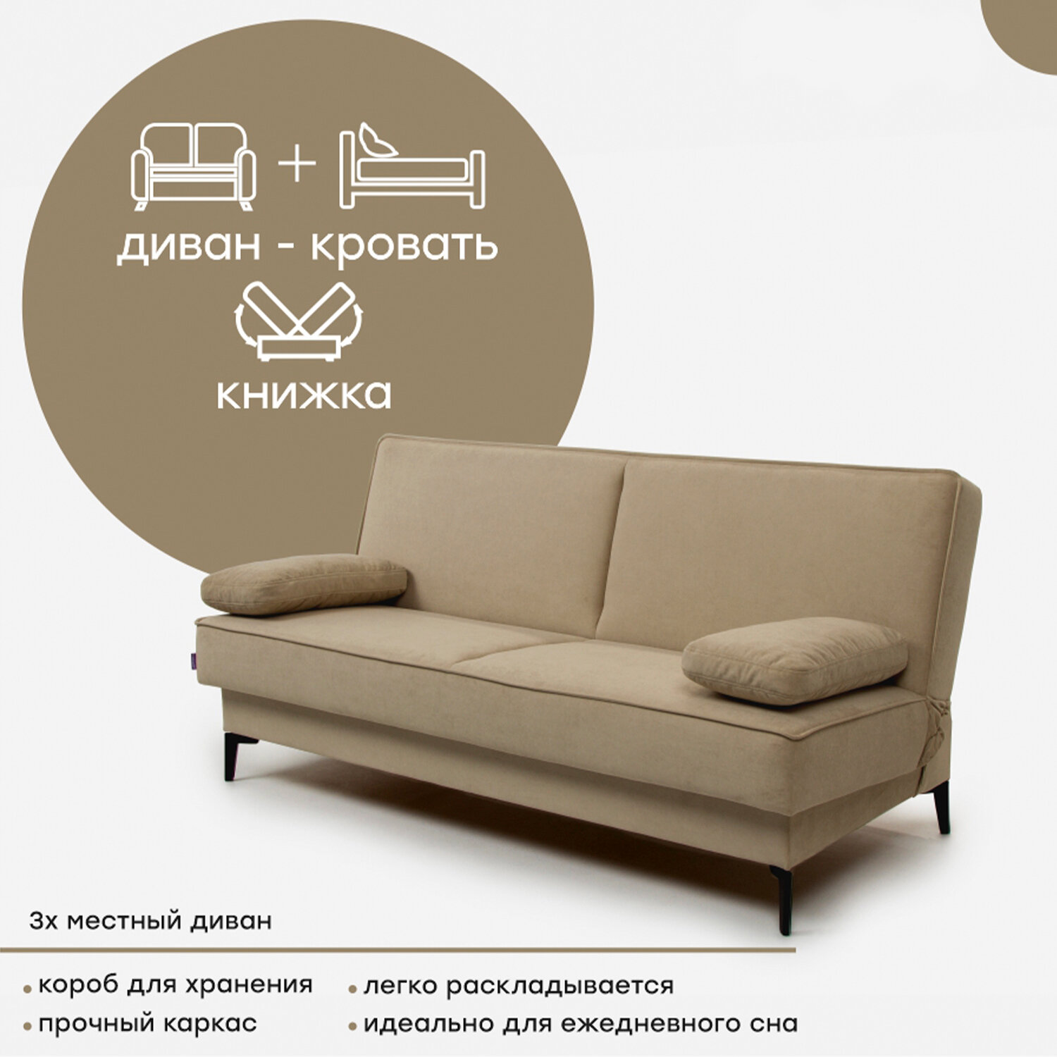 | Особенности | без подлокотников, пружинный блок, раскладная конструкция, ящик для белья |