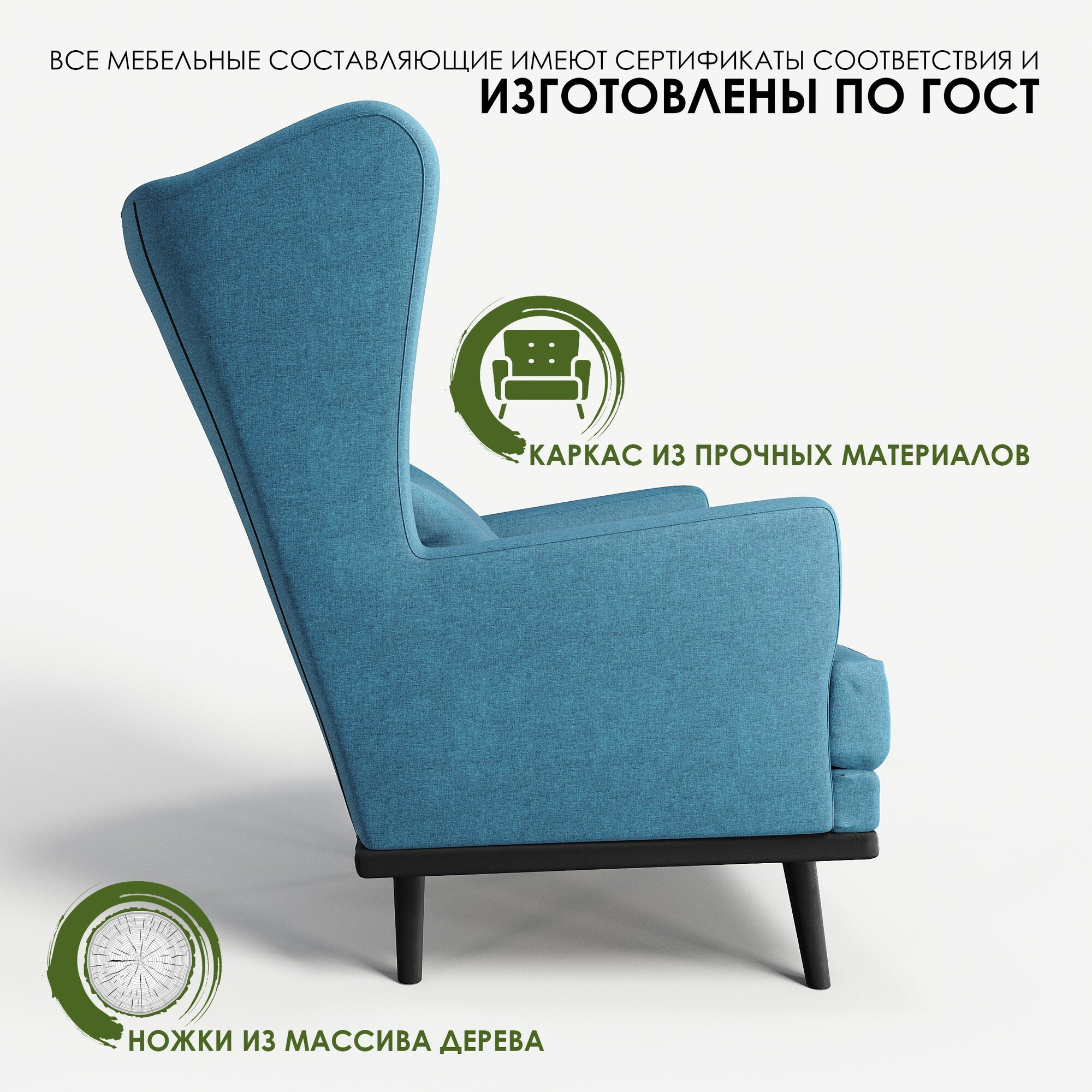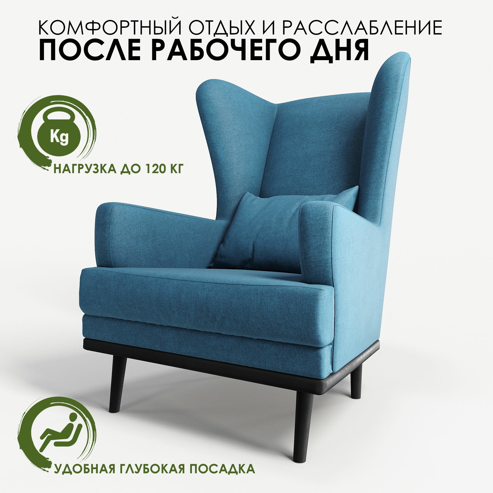 Кресло мягкое с ушами Фантазёр D-11 (синий) на высоких ножках, для отдыха и чтения книг, в гостиную, балкон, спальню и переговорную комнату.