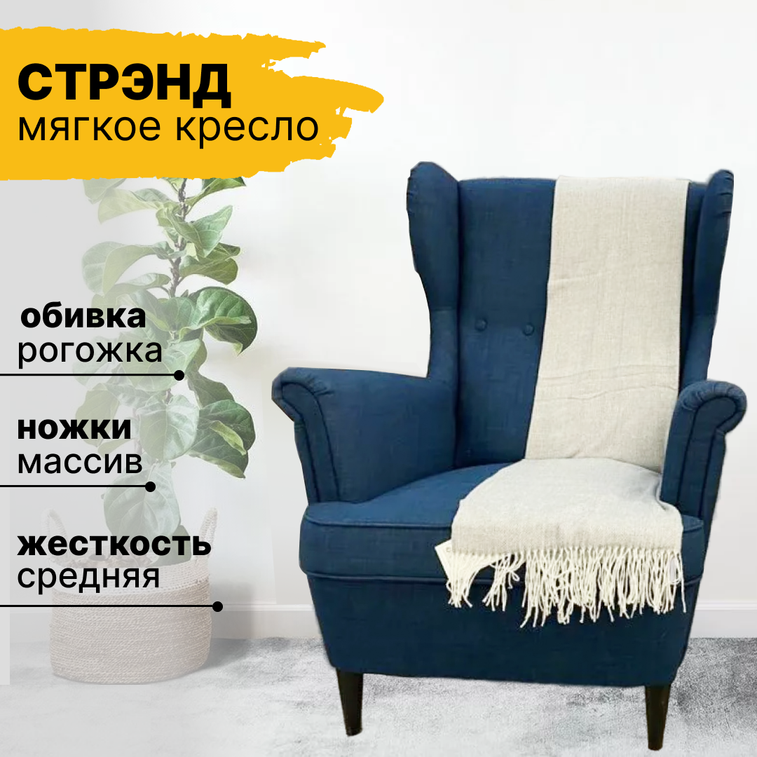 Мягкое кресло с высокой спинкой СТРЭНД (STRANDMON), рогожка, темно-синее