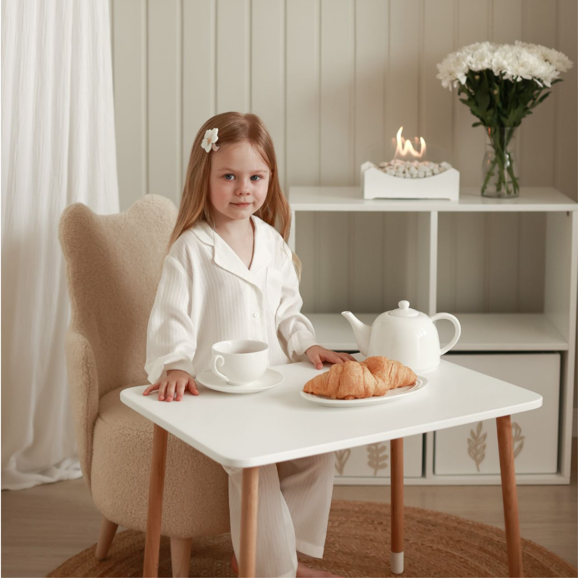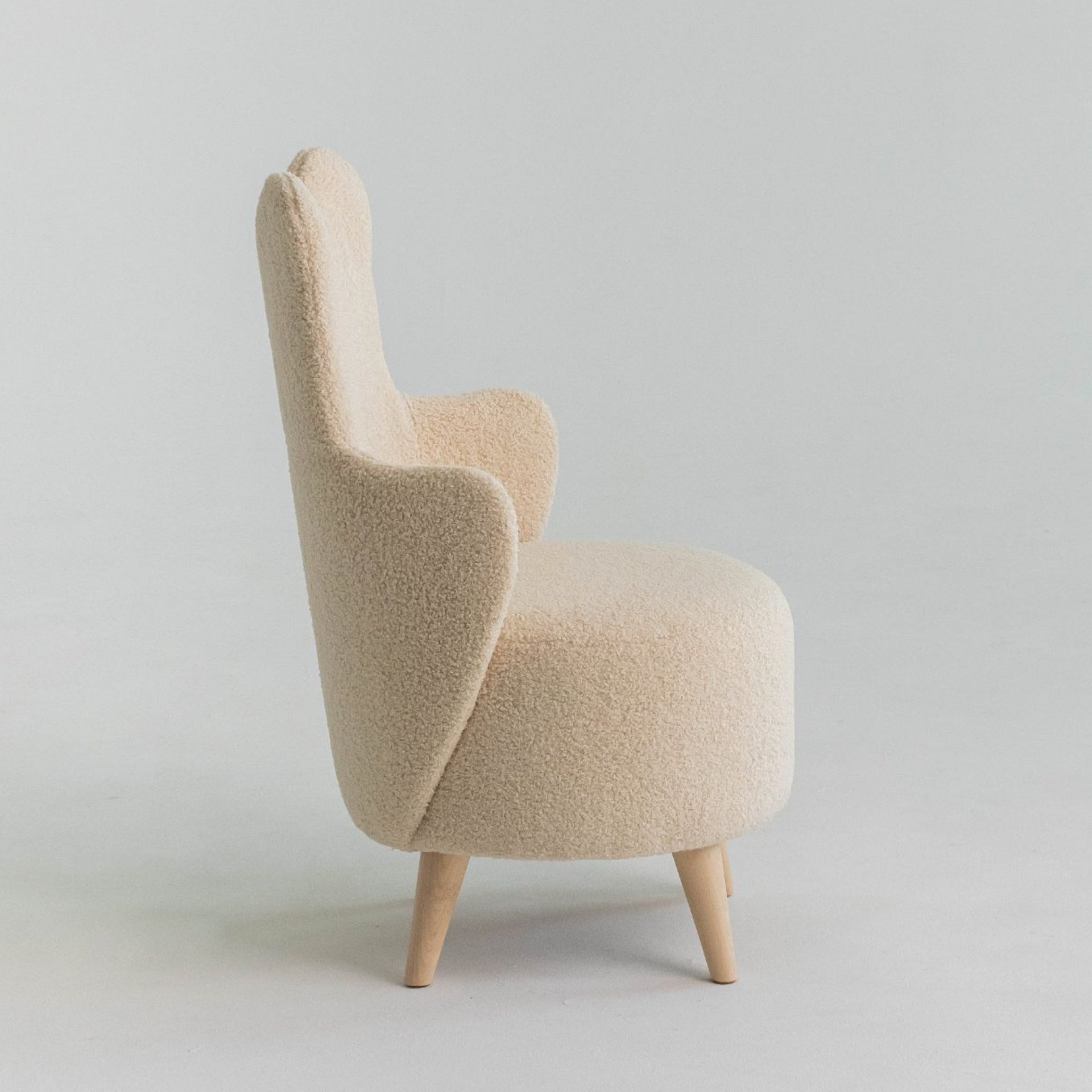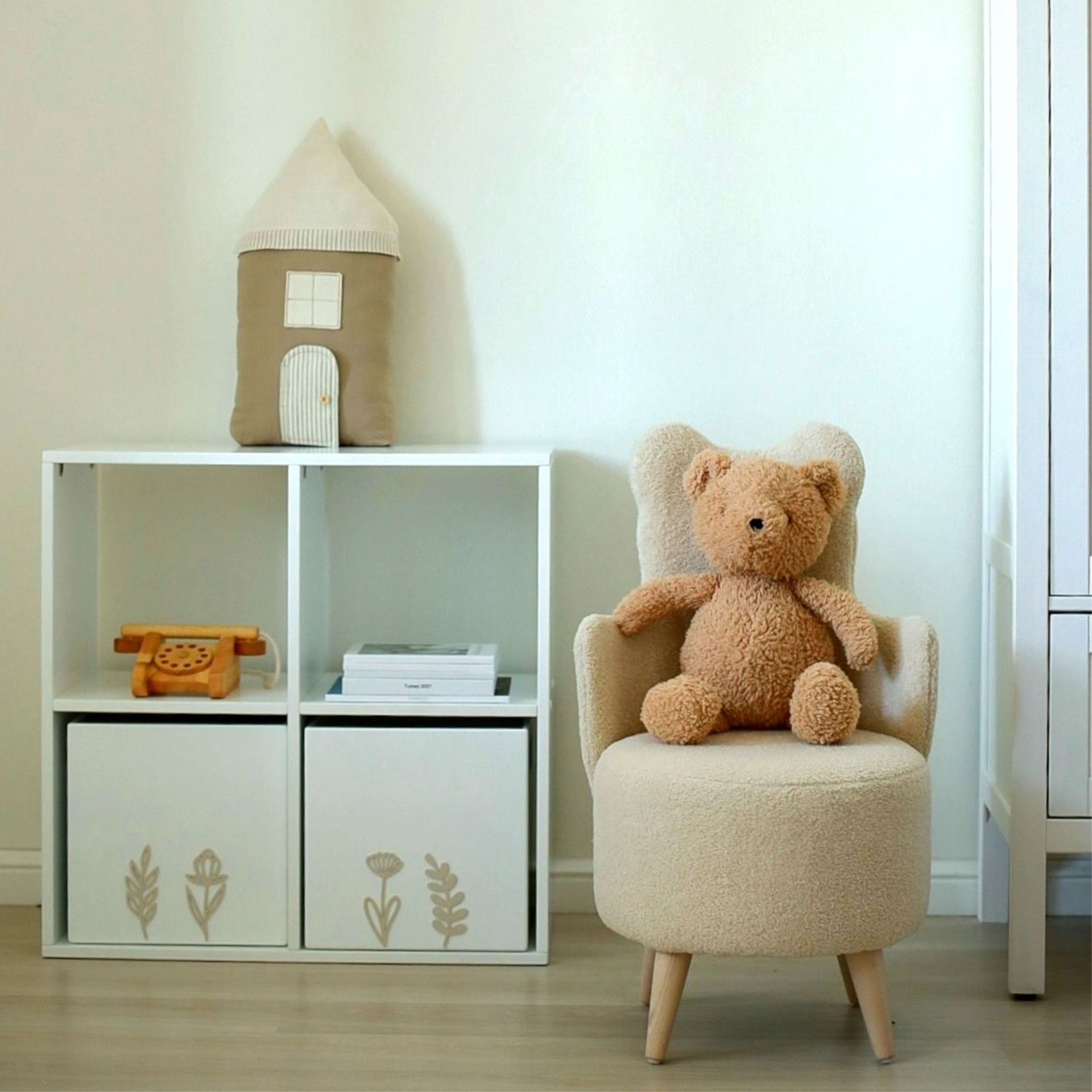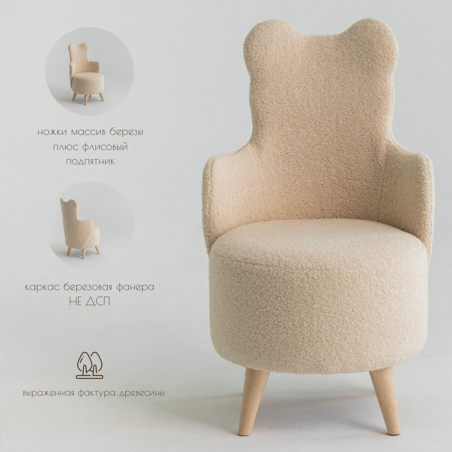 Пуфик со спинкой в прихожую DPkids Мишка банкетка в комнату в кухню бежевый букле для балкона лоджии интерьерный декор для дома для парикмахерская ресторана форма цилиндр подставка для ног